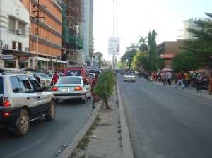 Quando chegamos de volta a Dar es Salam, não perdemos tempo: deixamos as malas novamente no já familiar albergue e partimos para explorar a cidade. Dar es Salam é a maior cidade da Tanzânia, apesar de não ser a capital. É uma cidade portuária, cheira a peixe e é muito menor do que eu imaginava. Talvez por ter tido uma passagem pelo socialismo, os prédios são muito baixos, estilo “Stálin”. Alguns prédios novos estão surgindo, a maioria hotéis. A rua principal, que eles chamam de “avenida dos bancos” não passa de uma rua não muito larga, com prédios feios e baixos.