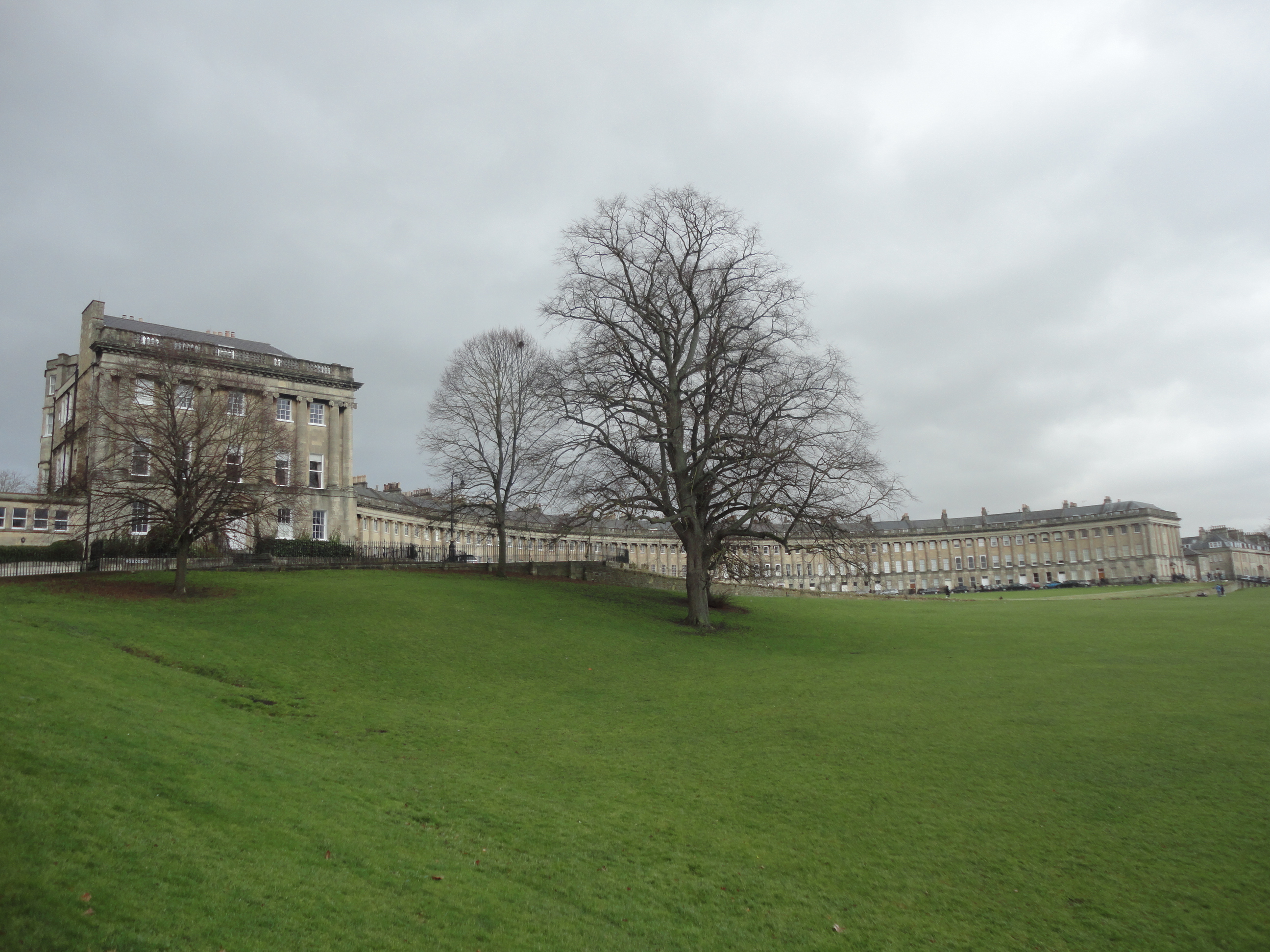 os pela rua Great Pulteney, a que preserva boa parte da arquitetura Georgiana, devido ao vento gelado-petrificador, voltamos para o calorzinho do nosso carro. Como planejávamos seguir caminho até a próxima parada, Stonehenge, resolvemos pegar o carro na estação e acelerar a visita pelos demais pontos de Bath.  E mais uma vez seguimos girando pela cidade tentando entender as direções e enfim encontrar os famosos “Círculo” de Bath, uma espécie de conjunto de construções georgianas que circulam uma praça e o “Royal Crescente”, também um prédio imenso que forma uma meia lua. O tempo corria….e o dia procurava desaparecer. Nessa época do ano, os dias são bem curtos na Inglaterra. O sol se põe 3 ou 4 horas da tarde. Seguimos nosso rumo com a dura missão de chegarmos a Stonehenge antes do anoitecer e atravessando diversos “vire a esquerda” e “vire a direita” logo após tal cidadezinha ou farol. Sem mapa o negócio ficou difícil. As anotações no papel não foram suficientes e algumas abordagens pelos Pubs ingleses(como são chamados os bares por aqui) para perguntar sobre o melhor caminho  custaram algum tempo de entendimento. Interessante é que os ingleses são atenciosos para passar a informação, mas são atenciosos demais: geralmente as explicações sobre o caminho são muito extensas o que confunde muito o interessado. Ele não se contenta em apenas dizer, vire na segunda a esquerda. Mas ele prefere dizer “logo que passar duas ruas, sendo que na primeira rua vai ter um supermercado na esquina e na outra vai ter uma lavanderia, você dá a seta para esquerda, pára do lado esquerdo e vira a esquerda, tentando não