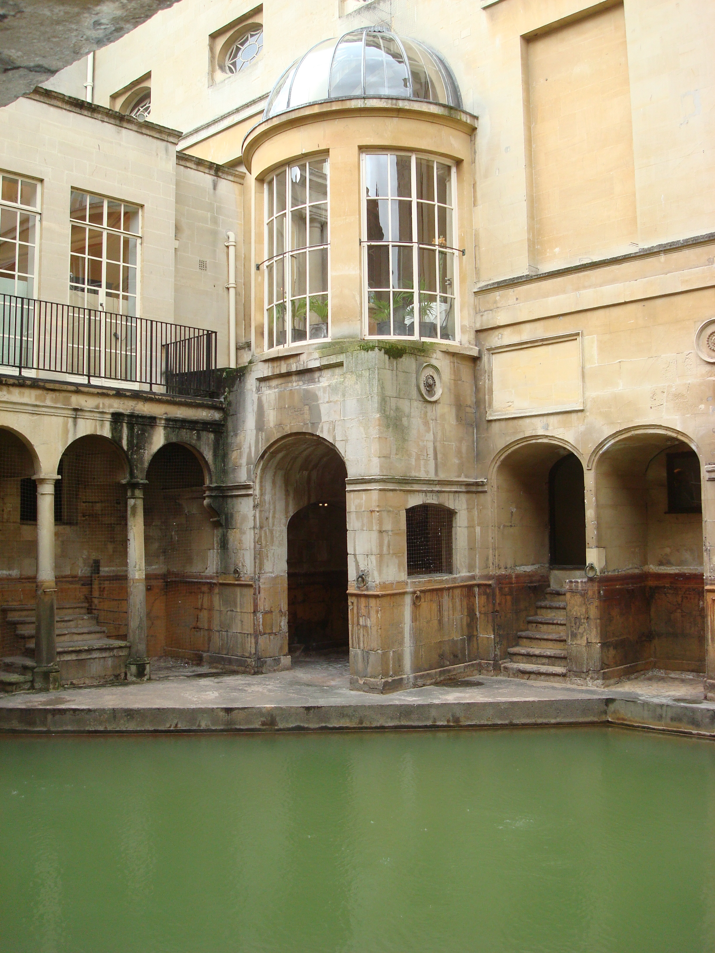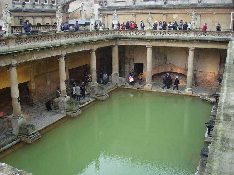 Deixamos então o carro na Estação e passamos a explorar a cidade. Bath é uma cidade no oeste da Inglaterra que foi explorada pelos romanos por volta do ano 40 d.c.. O romanos se instalaram nesse local com o intuito de explorar o poder medicinal e místico das águas termais encontradas no local. Daí o nome Bath (banho, ou caldas, tal como em Caldas Novas, no Brasil).  Devido a sua história e arquitetura medieval e georgiana, a cidade foi considerada patrimônio histórico da humanidade. A atração principal da cidade é justamente o  “The Roman Baths”, lugar onde os romanos realizavam os banhos.O lugar é um museu, bem no meio do centro da cidade, e preserva algumas partes da construção