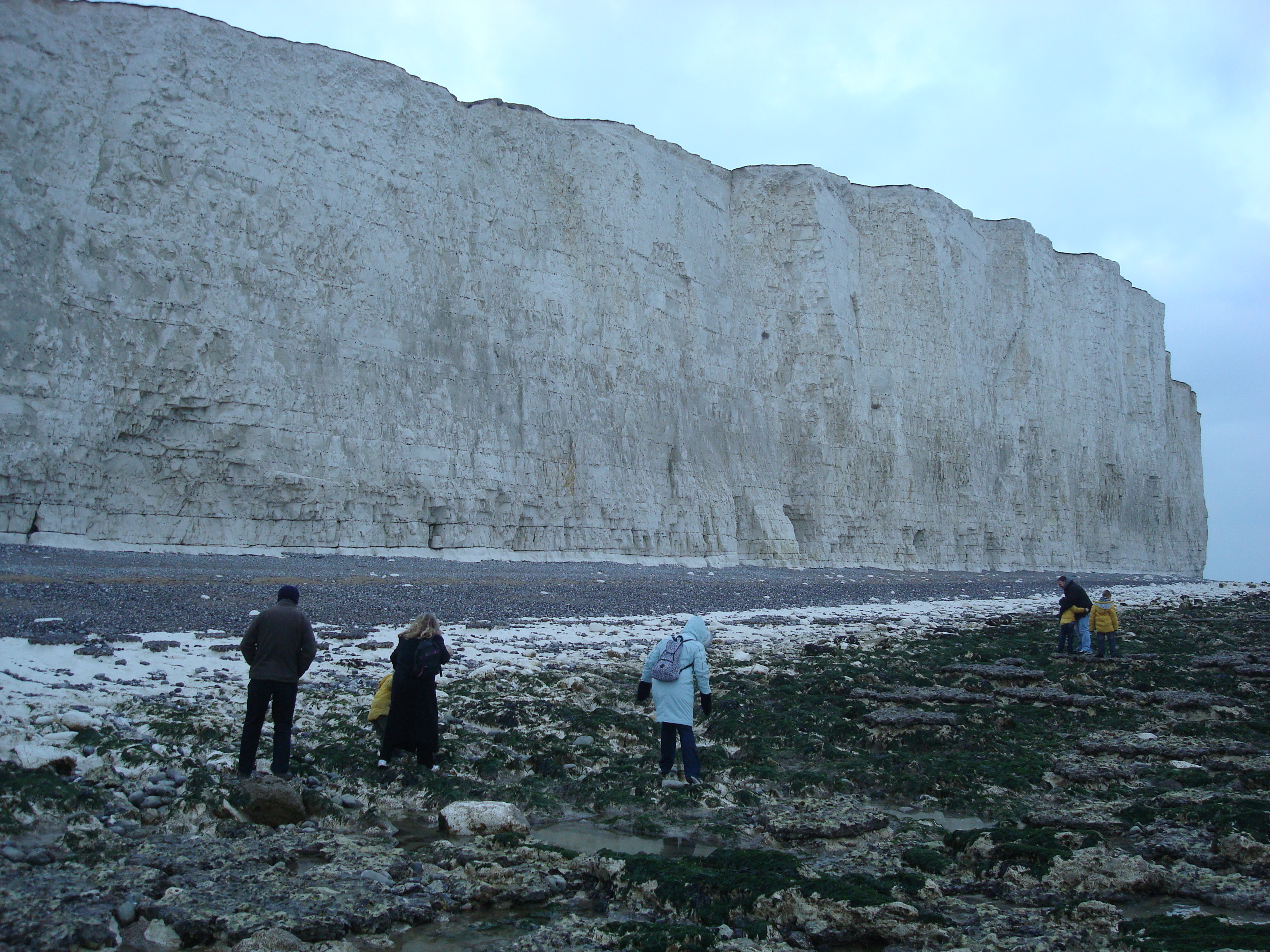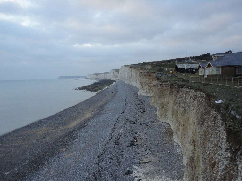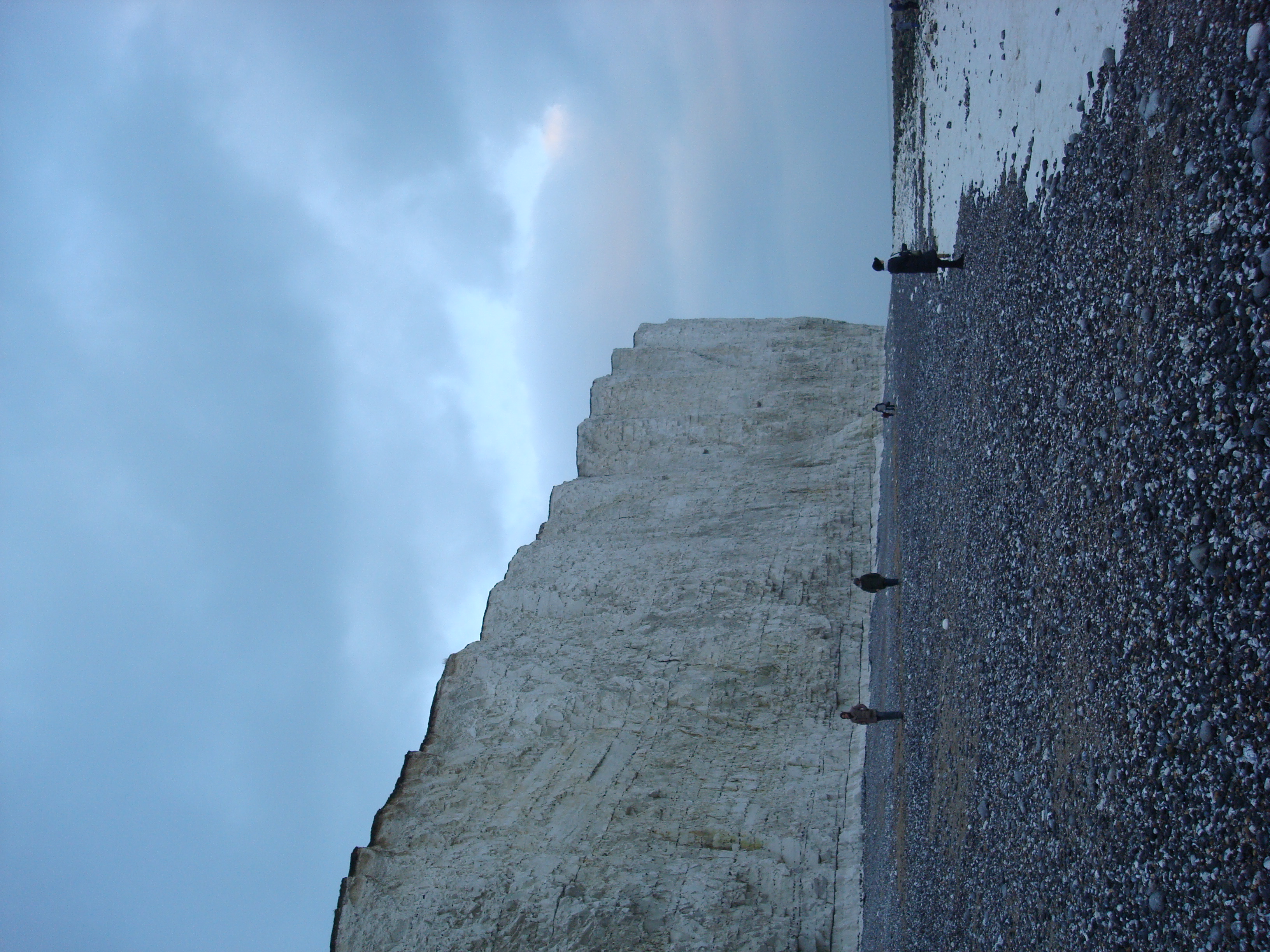 fácil entender a dica. Havíamos encontrado as sete irmãs. Maravilhoso.  Tratavam-se de sete imensas falésias, verdadeiras muralhas em frente ao mar. Entre os imensos barrancos, as areais de pedras grossas completam o charme dessa impressionante obra da natureza. Ver os castelos da Inglaterra, obra dos homens, são ótimas lembranças. Mas ver suntuosidade da natureza é outra coisa. O respeito é outro, a lembrança é outra.  Brincamos como crianças nas areias grossas e as pedras sobressalentes da beira do mar. Esquecemos o frio, o vento gelado da encosta. Aproveitamos as The Seven Sister nesse fim de inverno.  Já agendamos a volta no alto verão e no alto inverno. Deve ser inesquecível passar por ali coberto de neve bem como também com o sol escaldante….