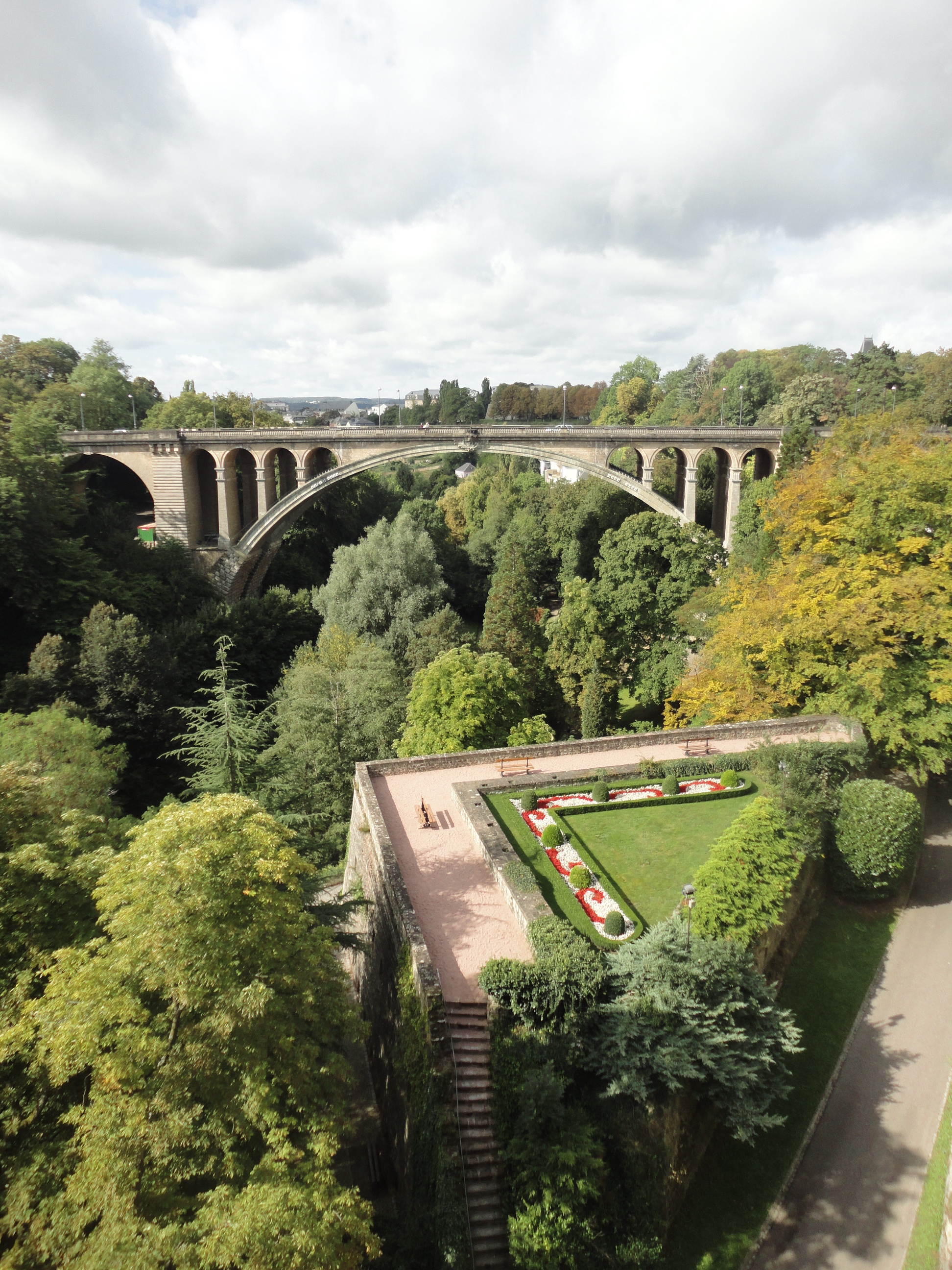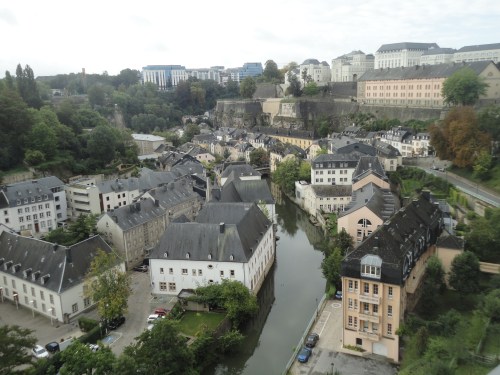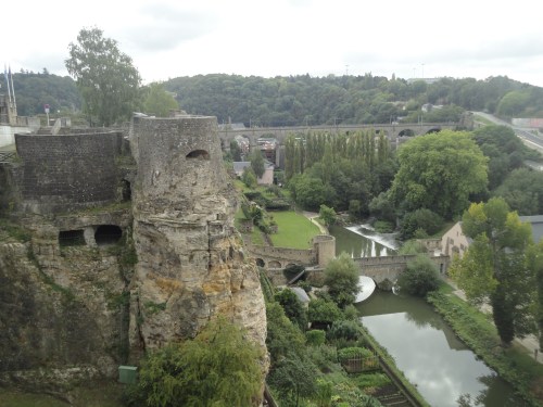 No dia seguinte logo cedo começava o tour tradicional pela cidade. Havíamos escolhido ficar naquele albergue justamente pela posição estratégica para começar esse tour. Mas para quem só tinha um dia como nós, fizemos o que queríamos na medida certa. A nossa caminhada começou às 9 horas da manhã, com um roteiro especial desenhado por nosso amigo português.  Luxemburgo começou com uma cidade construída dentro de um vale. Com o tempo, a cidade foi crescendo e a parte de construções antigas (de 900dc) e a cidade mais nova (não tão nova, mas não tão velho quando a época do Império Romano) foram se misturando produzindo verdadeiras obras de arte. Mas o que particularmente me chamou a atenção foram as imensas paredes de pedras, as encostas das montanhas cercando a cidade baixa, passando a impressão que essas colunas estão invadindo a cidade, como se fosse algo recente. Obviamente é o contrário.Mas a minha sensação, como disse, foi inversa.