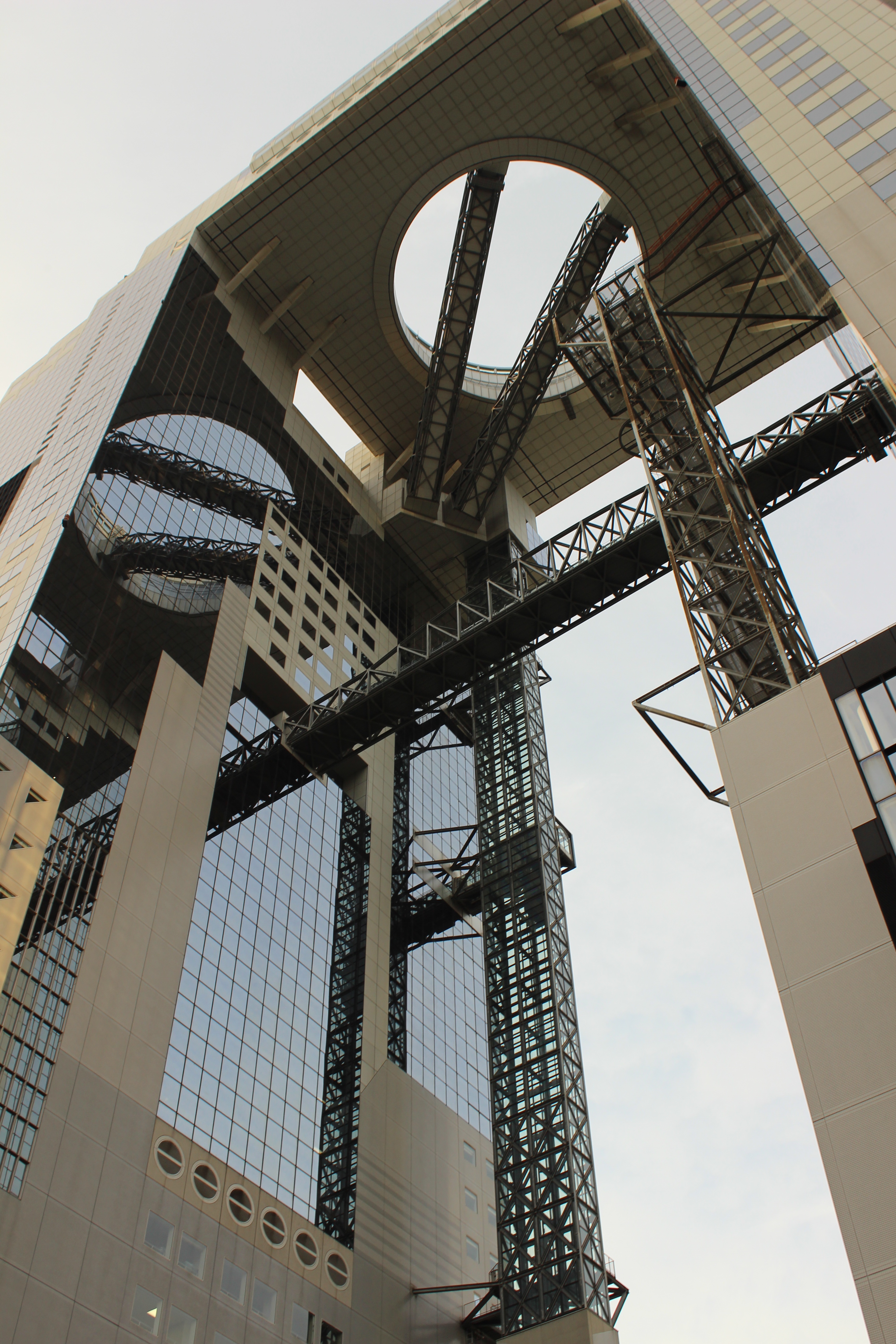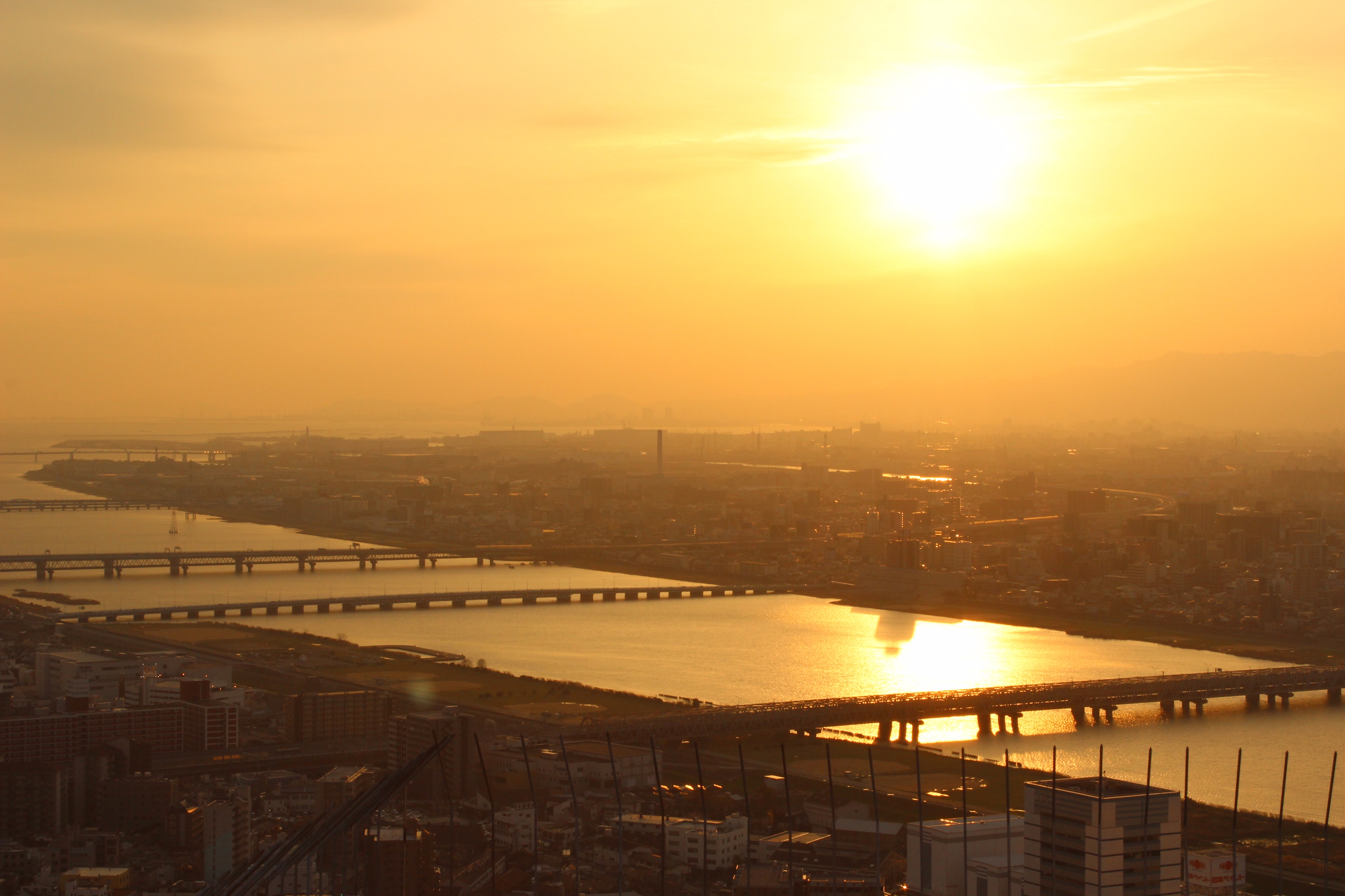 Nossa menina adorou andar pelo trem e desbravar áreas que se nao estivéssemos com ela provavelmente nem saberíamos que existia. Quando ela estava um pouco cansada da viagem e as vezes não queria se entregar ao sono e começava a entrar em crise de choro, era comum vir uma pessoa para lhe trazer um origami. Alias, ela sempre ganha origami, em tudo quanto é lugar. Especialmente no trem ela ganhou uns origamis complexos, difíceis de fazer. Até agora não vi nenhuma criança barulhenta ou dando esses chiliques como ela por aqui. Obviamente tem algo diferente na educação japonesa que espero aprender por aqui. Uma é que como pai devo fazer as coisas ainda mais com calma, e com a voz ainda mais baixa. Isso seguramente ajuda a ter uma criança mais calma. Em outro momento de inquietude, uma senhora de idade bem avançada segurando um colar com uma pedra bem pequenininha veio até nós começou a falar japonês com minha filha; conforme a pedrinha balançava a criança caia no sono. Quase cai no sono também. Duas horas e meia depois estávamos em nosso destino e em novo hotel, muito próximo da estação Shin-Osaka. Nossa nova estadia é um hotel, mas os quartos são em formato de casa japonesa. Tatame e mesinha de chá. Nossa filha adorou porque parecia casa de boneca. Ela foi tão espontânea já entrando na casinha arrumando as coisas, preparando o chazinho de mentirinha, arrumando as vasilhas que ficamos um bom tempo na porta observando ela, nós ainda segurando as malas. Mais tarde partimos para o centro de Osaka para conhecer o prédio da prefeitura. Trata-se um predio futurista(não é grande novidade já muita coisa aqui é futurista). É possível subir até o tipo e curtir vista. Entao curtimos o por do sol e a noite iluminada da cidade. Osaka não parece ser uma cidade inspiradora, mas também é agitada como Tóquio.