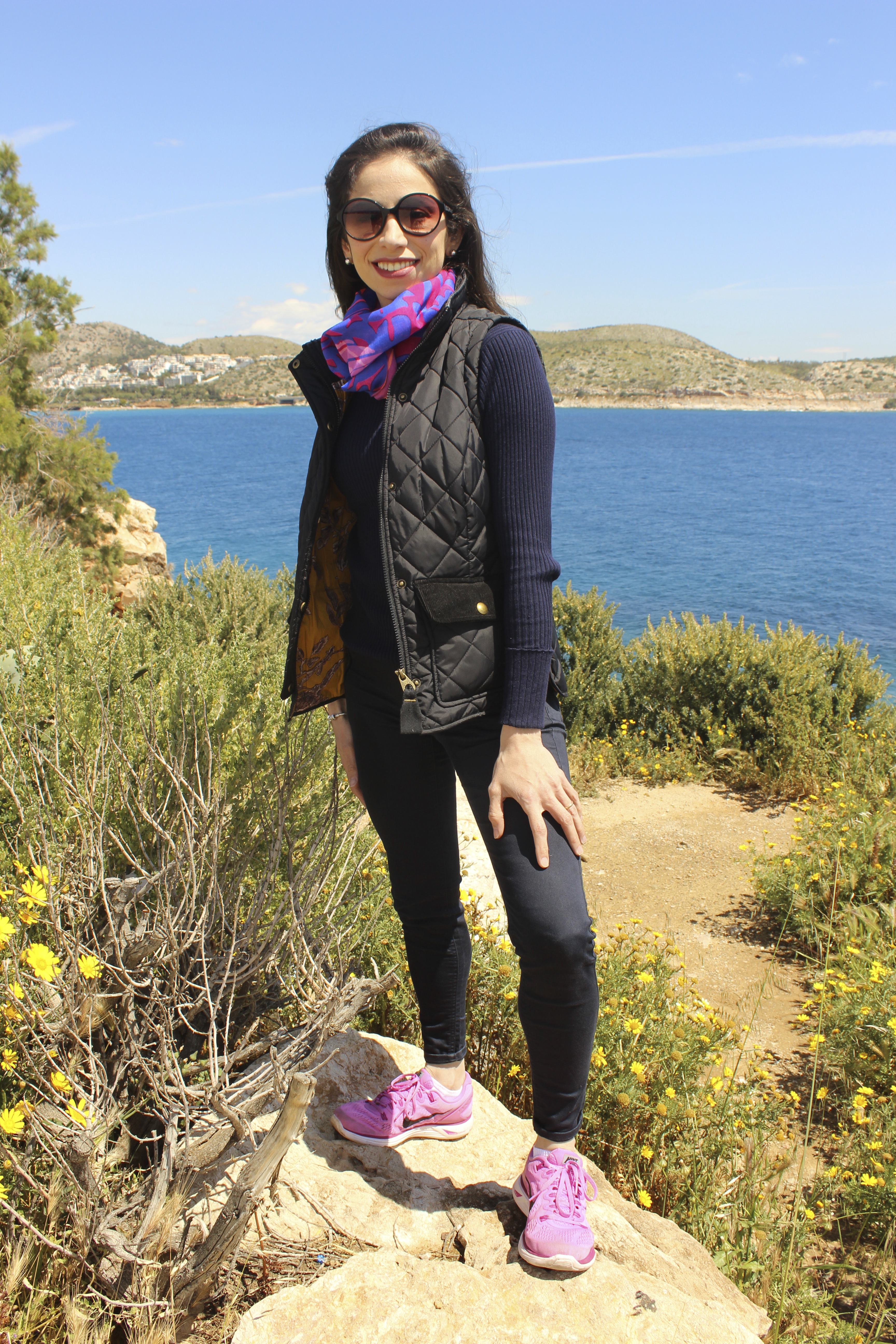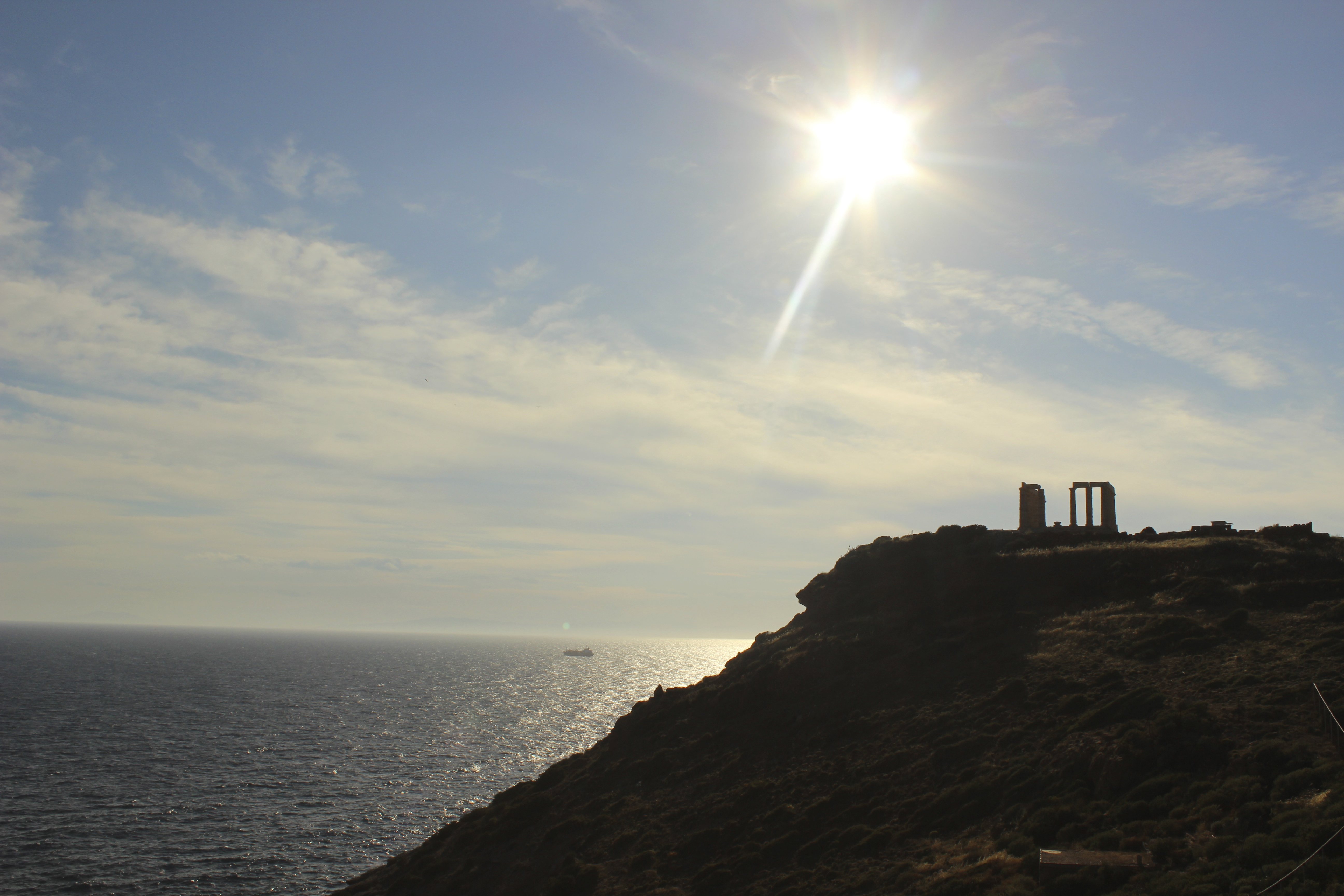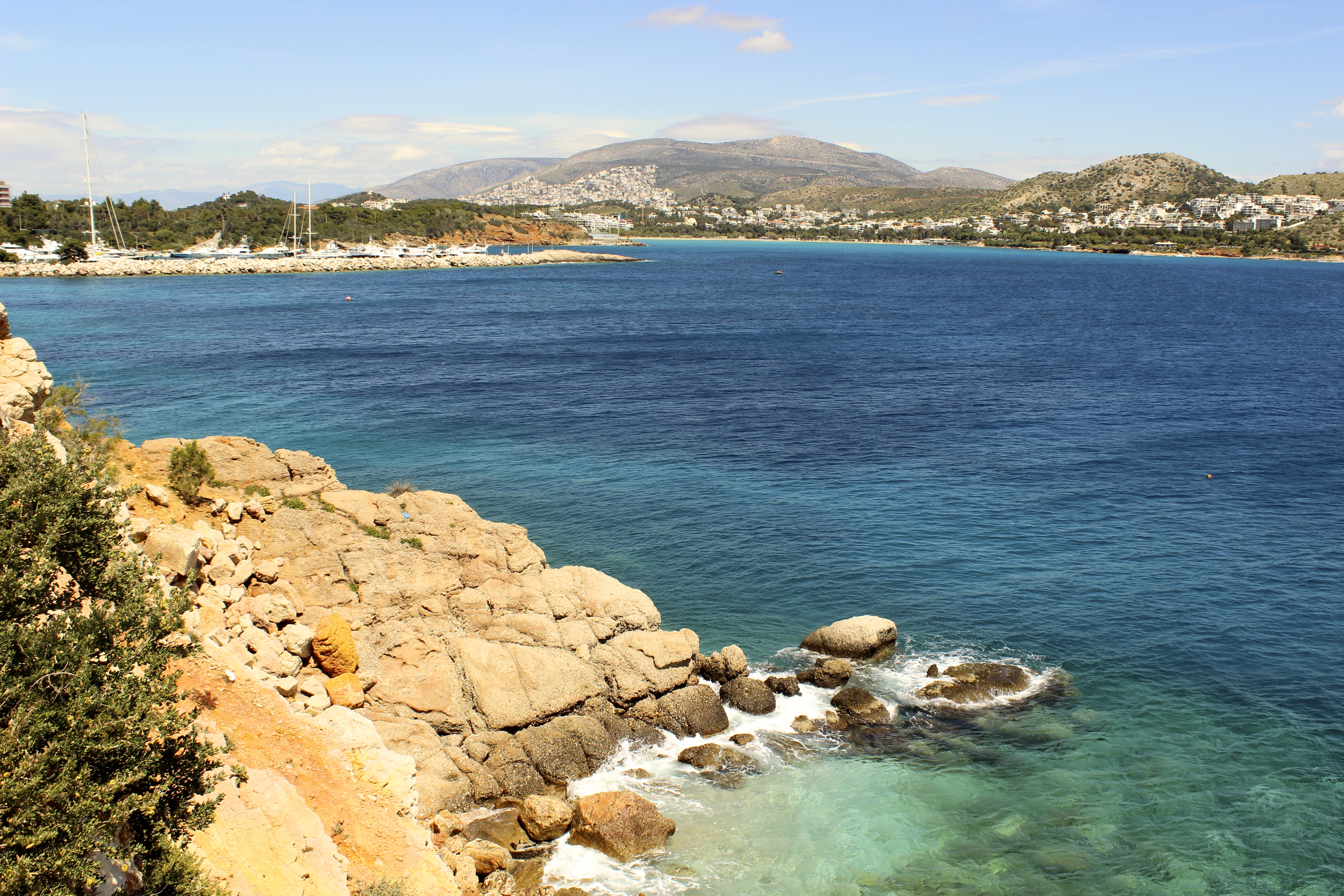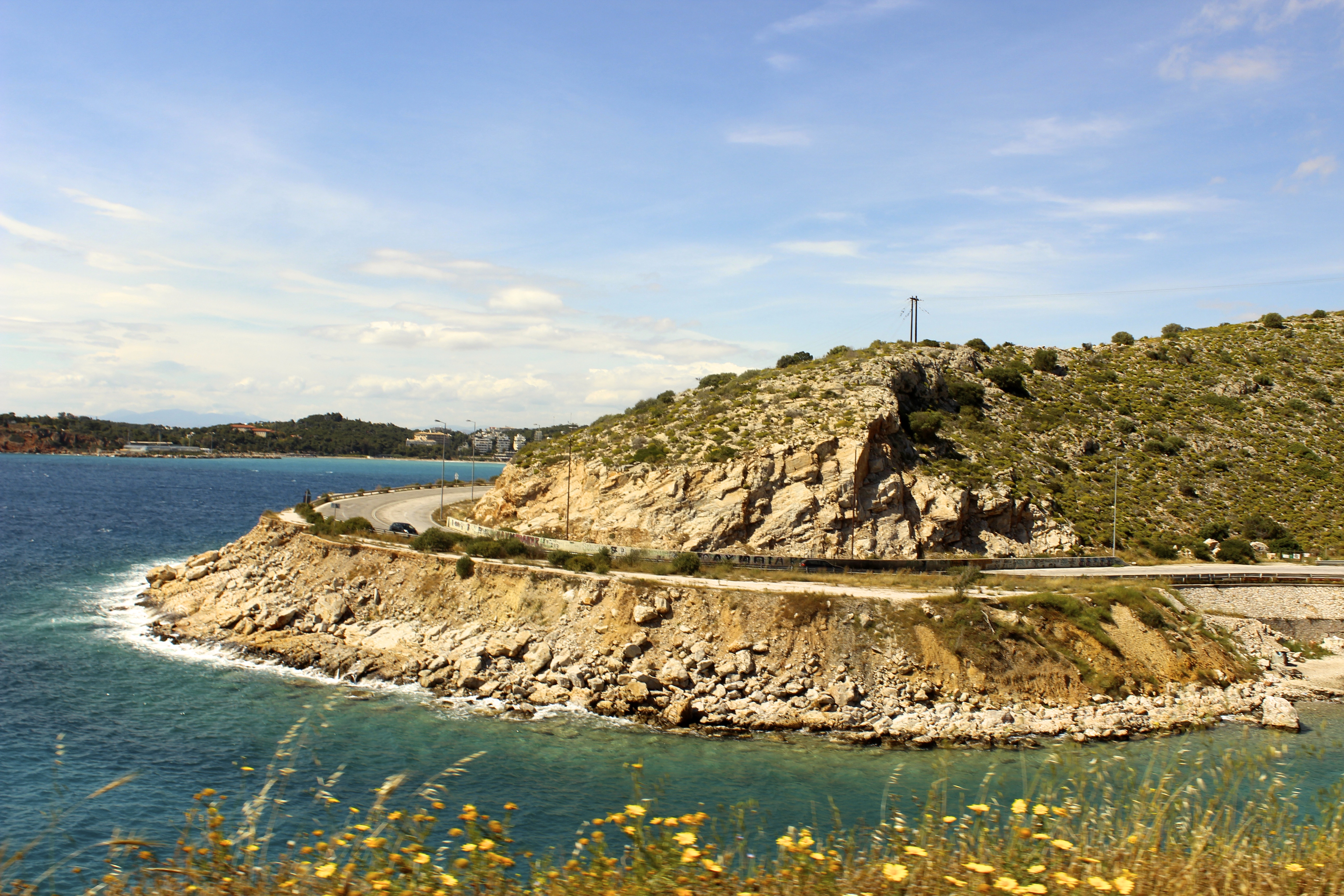 Eram quase meia noite de sábado. Resolvi sair para dar uma volta numa vilazinha perto do hotel. As pessoas estavam caminhando em direção a igreja, muito bem vestidas como quem vai à missa de Natal. Algumas com velas nas mãos. Eu havia achado estranho quando o recepcionista do hotel havia comentado que era pouco provável ter um lugar no restaurante do hotel naquela noite. Quando foi meia noite, os fogos de artifício começaram. Estava parecendo a virada do ano novo. Da janela no nosso quarto era possível ter uma boa dimensão dos fogos por uma longa distância. Não era algo apenas na vila. Era a celebração da chegada da Páscoa em todo o país. Uns vinte minutos depois o saguão do hotel ficou tomado pelos hóspedes voltando da igreja e se encaminhando para a “ceia”. Para os Cristãos a Páscoa é o dia mais importante e isso parece ser realmente o fato na Grécia. Sábado foi um dia bastante interessante. Lembro muito bem na hora do café da manhã a July comentando que o sábado era um dia em que os católicos geralmente ficam mais compenetrados, pois é o dia que antecede o Domingo da Ressureição, assim sendo a celebração da Páscoa acontece no próprio sábado, em horário próximo à meia noite . Nunca percebi isso muito no Brasil, mas certamente isso acontece aqui na Grécia. Alugamos um carro e saímos para explorar as famosas praias paradisíacas da Grécia. O céu azul era convidativo, mas ainda havia um friozinho no ar. A primeira parada foi Glifada. Uma espécie de Guarujá para os paulistas. Depois seguimos para Vouliagmeni, entramos em praias onde era comum ver placas com “proibido tirar fotos”. Não por causa da paisagem, essa poderia tirar fotos. Mas era mais para preservar as pessoas. Afinal era muito comum misturar praia com dezenas de iates dos milionários. Essas pessoas sim não queriam ser fotografadas. O mar mediterrâneo nessa região é azulzinho, cristalino. Paramos para almoçar em Vouliagmeni, onde nossa bebê aprendeu a tornar o gato seu melhor amigo para sempre oferecendo-lhe carne, só isso já é o suficiente. Aqui na Grécia é muito comum encontrar gatos e cachorros sem donos espalhados pelas cidades. São muito bem cuidados. Todos parecem ter donos e domesticados. Depois paramos para curtir uma praia chamada Varquizia. Depois seguimos para o templo de Poseidon. Fizemos o caminho entre a costa oeste até o sul passando pelo parque Nacional Sounion, o que garante uma vista muito boa de toda a costa. E era curioso dirigir pelo parque nacional e ver de vez em quando, no meio de uma área tão deserta senhorzinhos do nada fazendo cooper. Poseidon era o Deus do Mar na mitologia grega. O templo fica no alto de um morro, bem no extremo sul da Grécia. Dalí é possível avistar diversas ilhas.