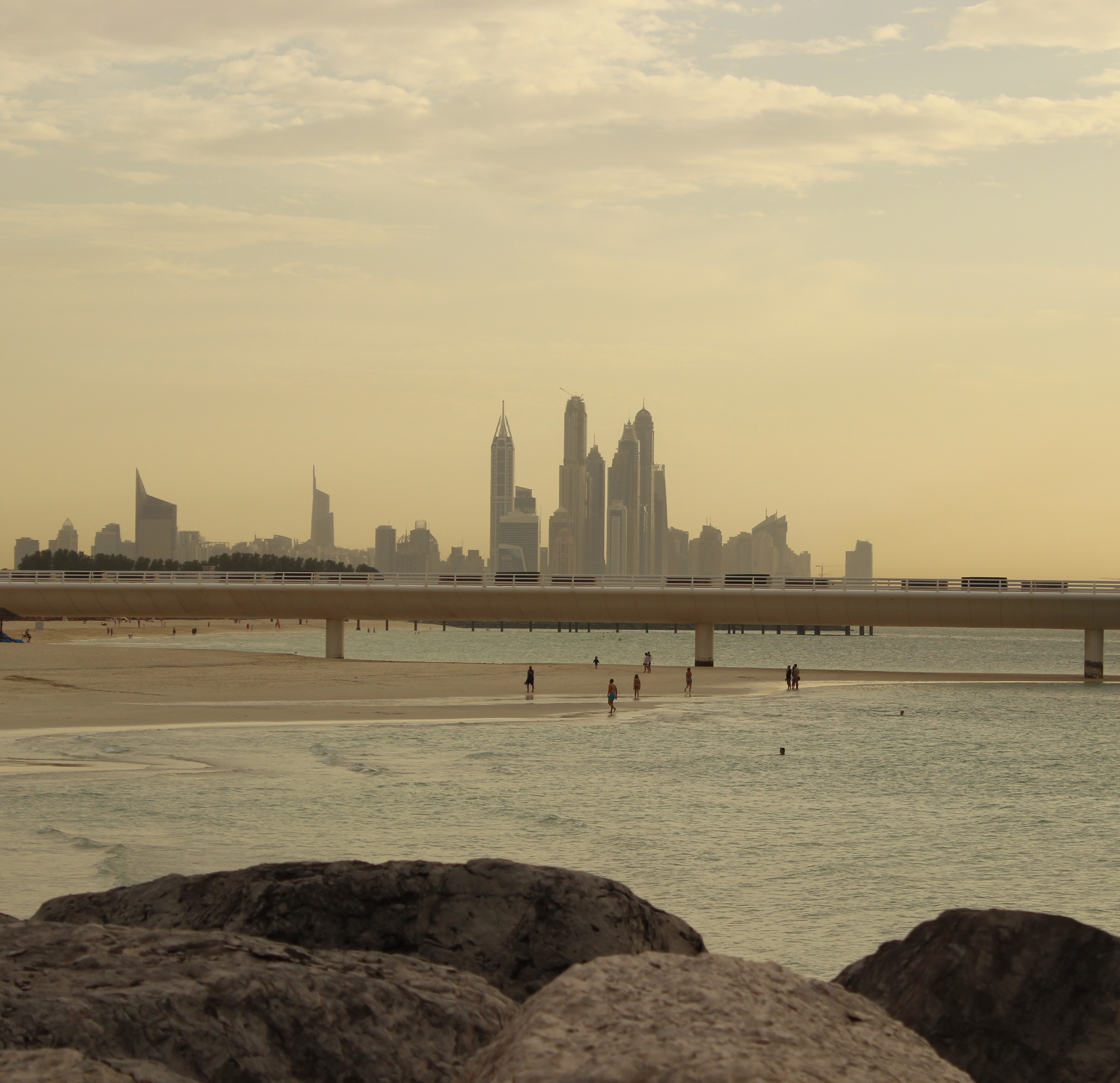 Partimos sexta-feira à noite de Amsterdam, destino Dubai. Foi uma viagem de 6 horas pela Emirates Airlines. Todo mundo fala tanto nessa empresa, comentam que ela trata muito bem as crianças, etc, que resolvermos experimentar. Viajando pela Emirate, você sempre terá a oportunidade de parar em Dubai. Ao invés de ficarmos viajando 24horas entre Amsterdam e Sydney, resolvemos ficar uns dois dias na Capital dos Emirados. Os Emirados Árabes Unidos tem muitas empresas próprias conhecidas internacionalmente. Bem, por enquanto eu só conheço a Emirates. Chegamos na manhã de sábado. Saímos impressionados com a ostentação do aeroporto, já denotando o que veríamos pela frente. Elevadores duplos enormes, cachoeiras para todos os lados e a sensação de estar numa Disneylândia do deserto, muitas pessoas com vestimentas locais (sim isso é original), mas com arquitetura, ultramoderna, meio “forçada” com sotaque árabe. E também logo vimos que todas as lojas, cafés, farmácias de Londres podiam ser encontradas por lá. Dalí seguimos o mais rápido possível para o hotel. Dormimos por uma horinha e saímos. E começamos nosso passeio pela parte moderna. Locomover-se por Dubai por transporte público não parece ser tarefa fácil. Tudo é muito distante e o metrô ainda é limitado, pelo menos essa era minha impressão olhando para o mapa. Dubai é uma cidade planejada. Deu a impressão de não haver transporte público em abundância, provavelmente tem a ver com o fato de o petróleo ser muito barato. Tem carros para todos os lados. Os Emirados Árabes são um dos maiores produtores de petróleo do mundo. E taxi é relativamente barato. No percurso até a área dos arranha céus, vendo novos imensos prédios sendo construído, perguntei ao taxista, um paquistanês, de onde vinha a mão de obra: “Índia, Paquistão e Bangladesh”. Mão-de-obra barata. Andando pela cidade, pelo menos pela parte moderna, que já é de longe a maior área, você não vai encontrar esses operários andando por ai. Eles trabalham 12 horas por dia e 6 dias por semana. Pelo contrário, Dubai é uma cidade para uma elite do mundo bastante seleta. Ela é cara e bem cara. Não, não, melhor dizendo ela é extremamente cara. Andando por aqui percebe-se facialmente que é uma espécie de cidade turística para milionários do mundo árabe. E também um lugar para as mulheres ter onde gastar. Lembrando que homem pode ter mais de uma mulher. Quanto à arquitetura, ela impressiona. Todos os arranha céus tem desenho futurista, servem de espetáculo dia e noite. Passear de carro parece ser a melhor opção pra entender o que é essa cidade, o que é esse “projeto” Dubai. Esse projeto é polêmico. Impossível circular por aqui e não parar para pensar que para uns isso é um sonho, um “feito” da humanidade, transformando deserto em alguma coisa, mas por outro, um pesadelo quando se entende que para que esse esforço está sendo realizado. O país é um imenso deserto, mas o petróleo é mais do que suficiente para permitir a construção ilógica, a meu ver, de uma mega cidade, bastante ocidentalizada, utilizando largo recurso da natureza e mão-de-obra, para criar uma falsa atmosfera de prosperidade para milionários e turistas. No entanto, isso tudo se torna legítimo porque ele é baseado no argumento de que se eles tem dinheiro para fazer, o que os impediriam? A história desse local não segue a história de cidade tradicional. Ela nasceu no meio do deserto porque é financiada por mega investidores, na maioria os próprios magnatas e shakes do petróleo dessa região, perpetuando o dinheiro quando o petróleo acabar. Os investidores do ocidente também tem o seu pedaço aqui. Depois de almoçarmos e percorrermos a grande avenida desses arranha-céus, resolvemos arriscar tomarmos um ônibus. Entramos pela porta do meio, o ônibus partiu. Ficamos num embaraço pois não havia cobrador e as mulheres deveriam ficar na parte da frente do ônibus. Havia uma barra separando os dois lados. Fizemos cara de desentendidos e descemos no ponto seguinte, no meio do nada, numa imensa avenida. Resolvemos seguir andando até a praia mais próxima. Atravessamos uma avenida onde carros passavam em alta velocidade. Nossa filha estava cansada e não queria mais ficar no carrinho. Andamos o quanto podíamos. Era incrível como apenas dobrar a esquina atrás de um arranha céu poderia te levar a grandes quarteirões feito de deserto. Bairros com casas antigas, misturando casas imponentes com casas muito simples, um espaço enorme entre uma e outra. E tudo isso com uma vista para a “modernidade”, parecendo um oásis. Exaustos, não havia escolha senão pegar outro taxi. E resolvemos seguir para o local, a meu ver, o ponto mais famoso de Dubai, o hotel Burj al-Arab. Esse é um hotel bem famoso. É comum ver imagens em revistas de gente jogando golfe ou tênis no heliporto no topo do prédio. Marketing é tudo e Dubai faz esse trabalho muito bem. Não estávamos sozinhos na façanha de tentar tirar uma foto boa. Olhando para aquele hotel isso foi a primeira coisa que veio na minha cabeça. Marketing. Mas estávamos alí para curtirmos a praia. A tarde foi caindo e seguimos para o Jumeira resort. Lá tem praia pequena com uma vista privilegiada para a baia e para o famoso hotel. A praia parecia ter sido desenhada para criança. Nossa pequena brincou bastante por alí. Achei a água meio fria, mas o calor permanente de Dubai, geralmente entre 27 e 35 durante este período do ano, faz você não se preocupar muito com isso. O vento ajuda a refrescar bastante. Bem, estivémos em outra oportunidade no Golfo Persa (bastante famoso nos anos 90 devido a guerra do Golfo, quando o Iraque invadiu o Kuwait). Do outro lado para praia onde estávamos, encontra-se o Irã, área onde já estivémos em outra viagem.