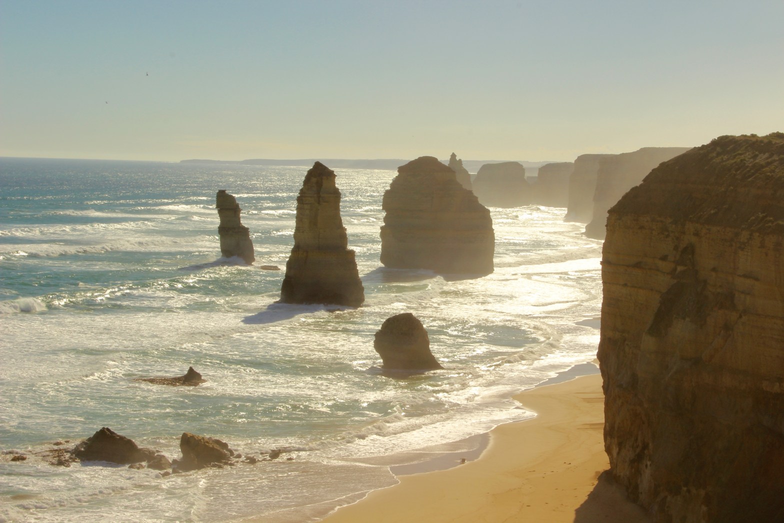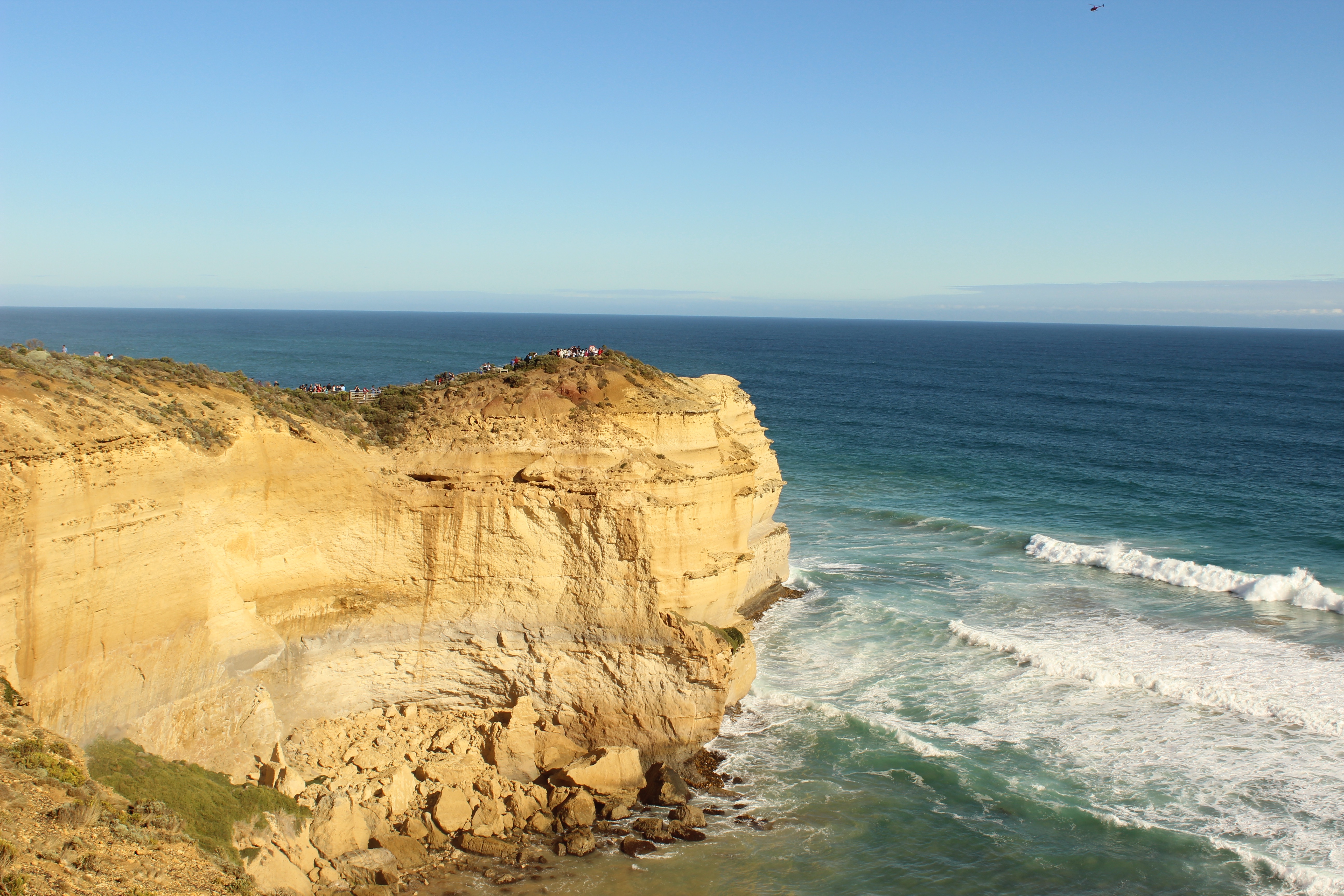 Do outro lado começou um dos passeios mais esperado até aqui: a Great Ocean Road. Uma das rodovias mais lindas do mundo. Isso porque a estrada margeia belíssimas praias. E que praias! A gente andava um quilômetro e encostava o carro para dar uma olhadinha. Cada praia tem a vista mais bonita que a outra. Em alguns casos a praia é imensa, de perder de vista, mas as ondas são tão sincronizadas que forma uma vista única. A estrada foi construída com o propósito de realmente tirar o fôlego. No meio do caminho algumas paradas são recepcionadas por coalas e papagaio. Se você tem paciência e olhar clínico, basta avançar pela mata do parque nacional que você vê um monte deles. No meio do percurso da Great Ocean Road, resolvemos passar, a noite em Lorne. Ficamos num resort em frente à praia. As ondas são bem fortes, excelente para os surfistas. Esse tipo de praia é bem diferente do Brasil. As ondas são imensas e elas quebram rente à praia. Se você fica parado na parte raza da praia, quando a onda quebra, você facilmente é sugado para dentro do mar. Uma criança corre muito risco nesse tipo de praia. Fiquei surpreso de não ver nenhum aviso sobre isso em nenhuma das praias que visitamos. Tivemos uma noite maravilhosa em Lorne. Acordamos tarde. Pelo menos descansamos. Voltamos à rota, cruzamos novamente com Coalas. A July ficou apaixonada por eles. Novamente passamos por praias de tirar o fôlego. O ápice desse passeio é um conjunto de pedras imensas espalhadas pela costa, em frente à um imenso penhasco. Trata-se dos 12 apóstolos. Você tem acesso a vários ângulos dessas pedras, mas não pode descer até a praia
