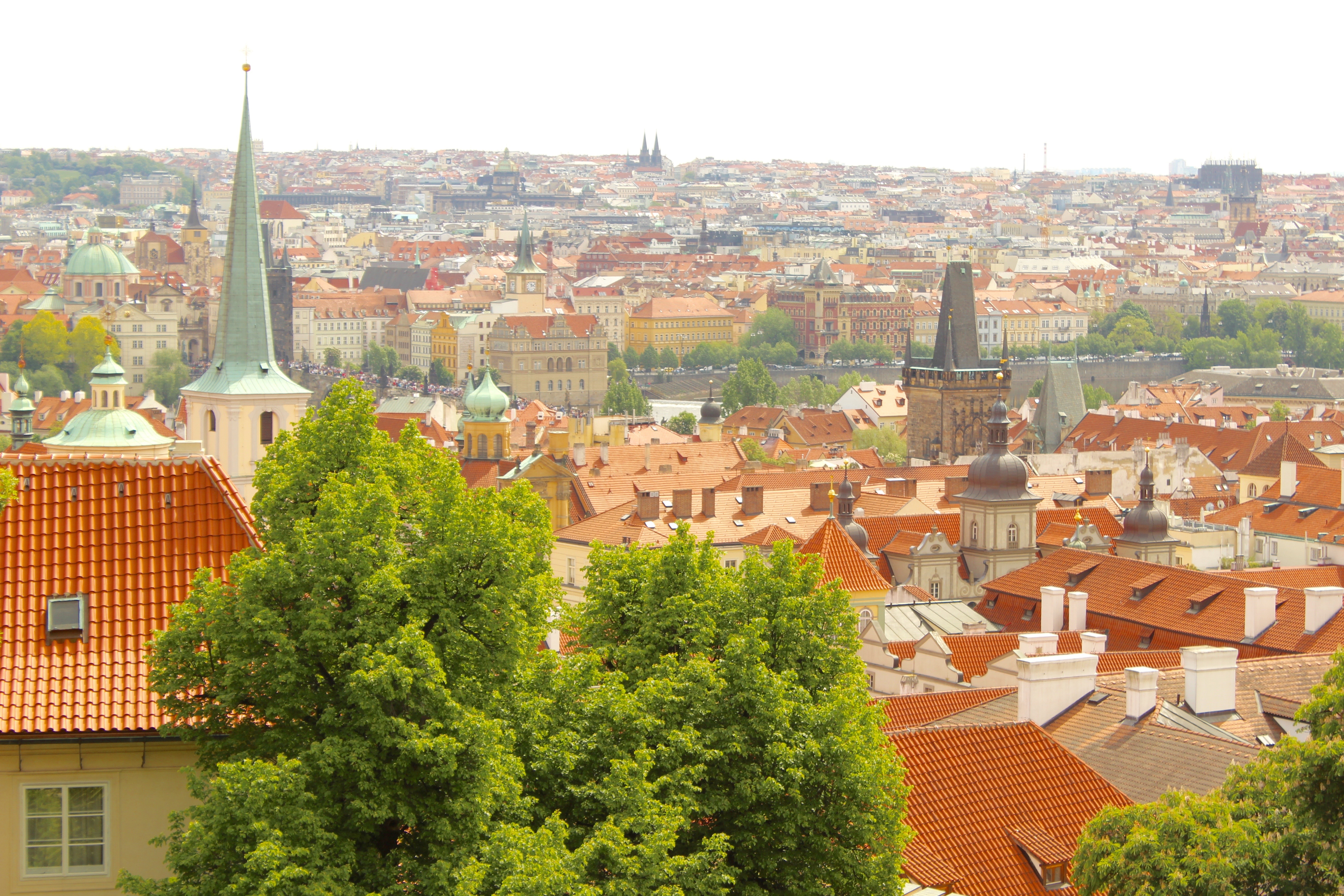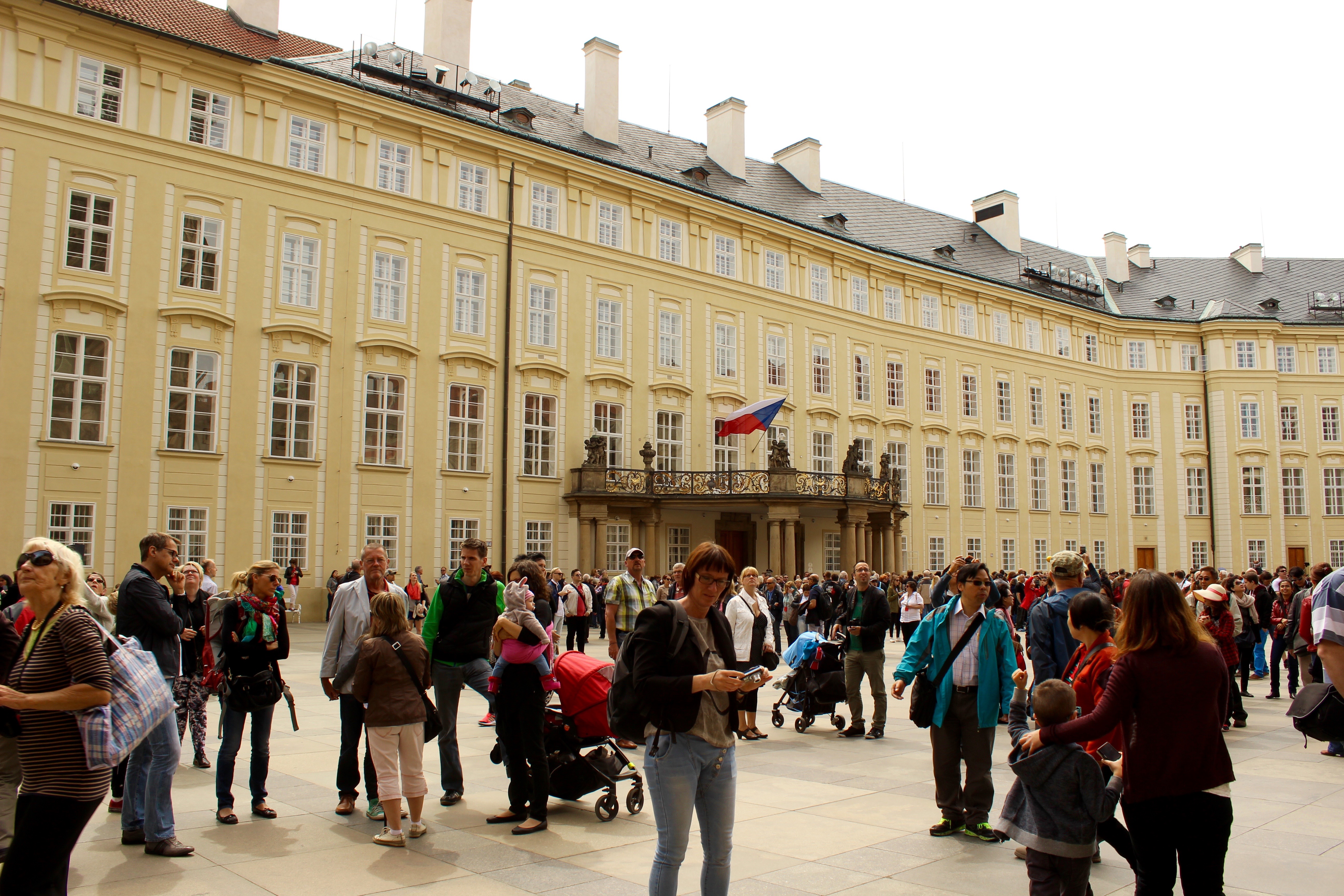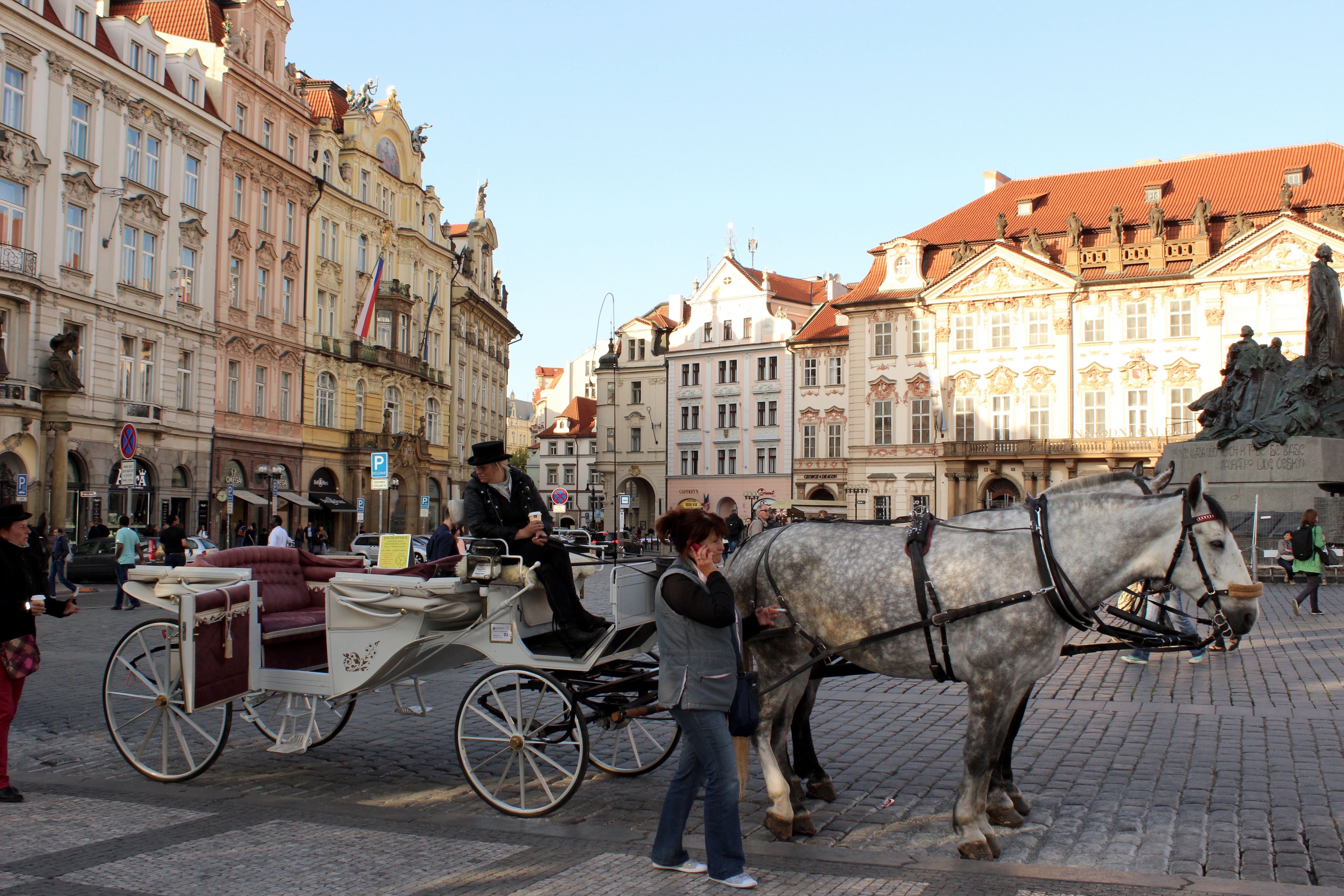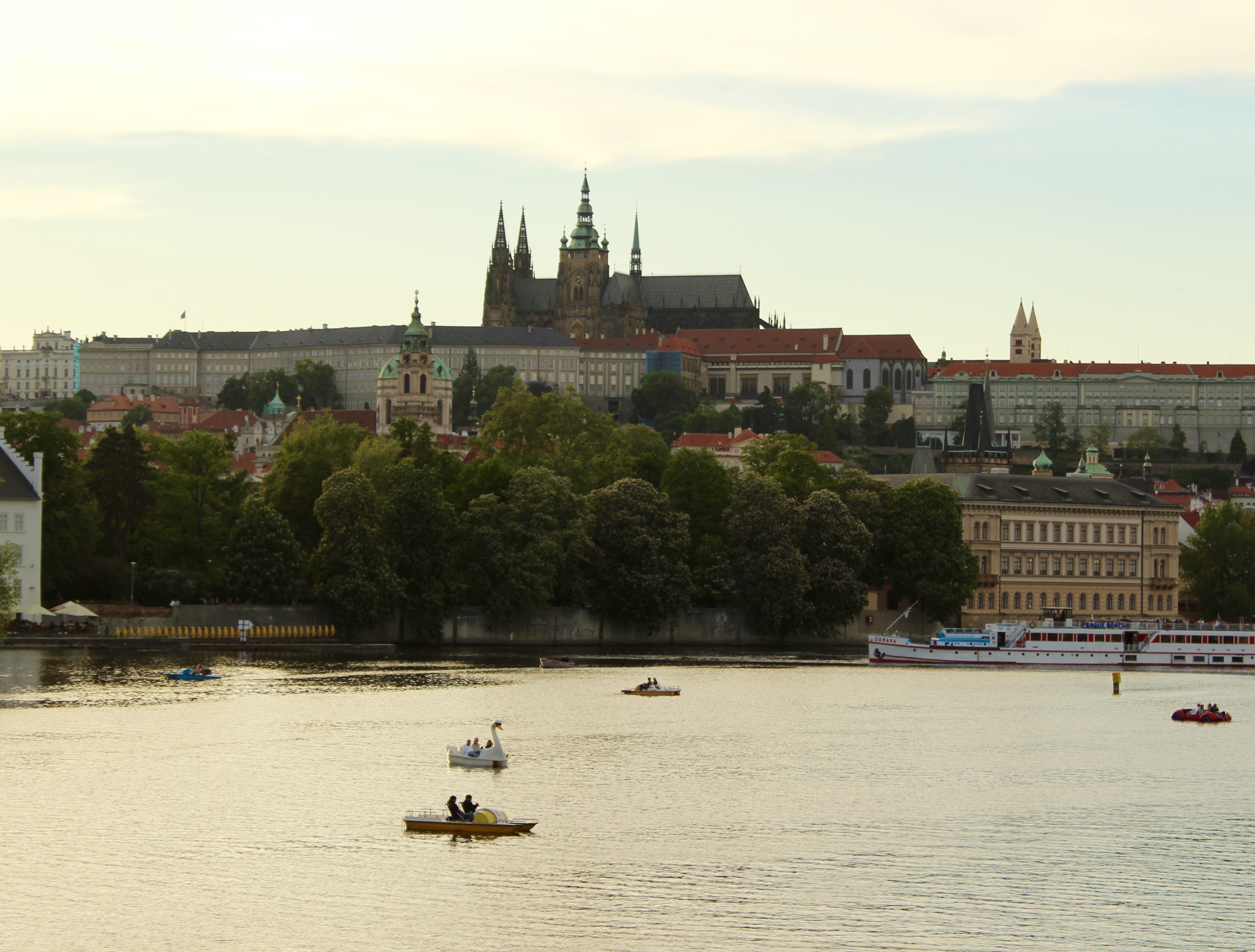 Logo após o almoço seguimos para Praga. Nesse momento a July ficou sabendo do destino final. Ali a longa distância ficou curta dado que ela queria ir para lá já havia muito tempo. Quando saímos da Alemanha logo vimos que a paisagem mudou. Na República Checa haviam morros cobertos de flores e caminhos mais tortuosos. Em Praga, que não era feriado, começamos nosso passeio já na praça principal Weceslau Square, em frente ao museu Nacional de Praga. Essa praça é a que já presenciou tudo quando é fato importante do País. Foi alí que os checos presenciaram os Nazistas tomando o poder durante a Segunda Guerra; foi ali que o País viu os soviéticos tomarem o poder e colocar um governo fantoche. E também foi ali que houveram os protestos pedindo o fim do período comunista. Caminhamos dalí até a cidade antiga. E a cidade antiga é o lugar mais agradável da cidade. A praça em frente a Catedral de San Vito, rodeada de belos cafés e restaurantes. Como o sol estava se pondo muito tarde da noite, pudemos curtir bastante a cidade.