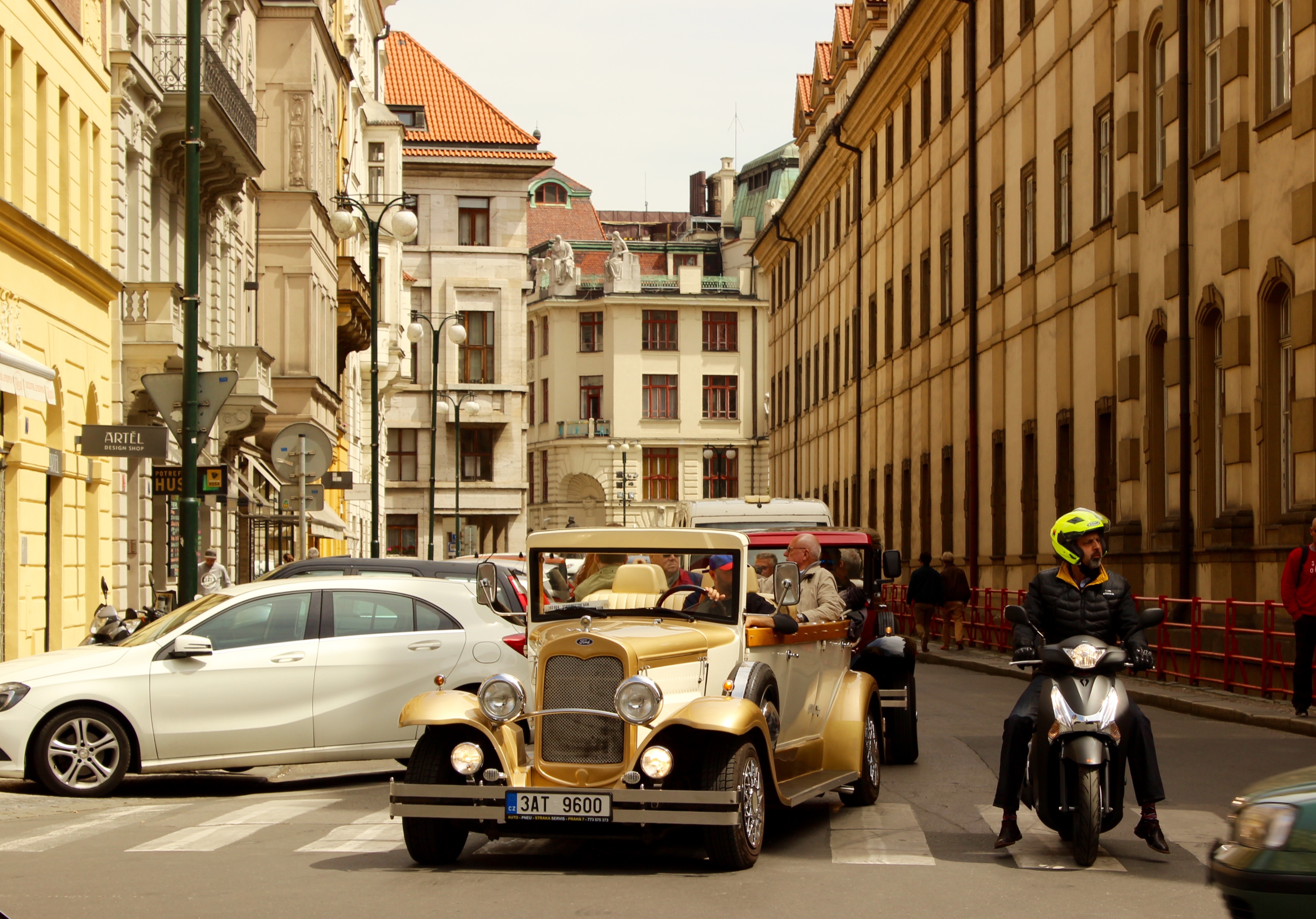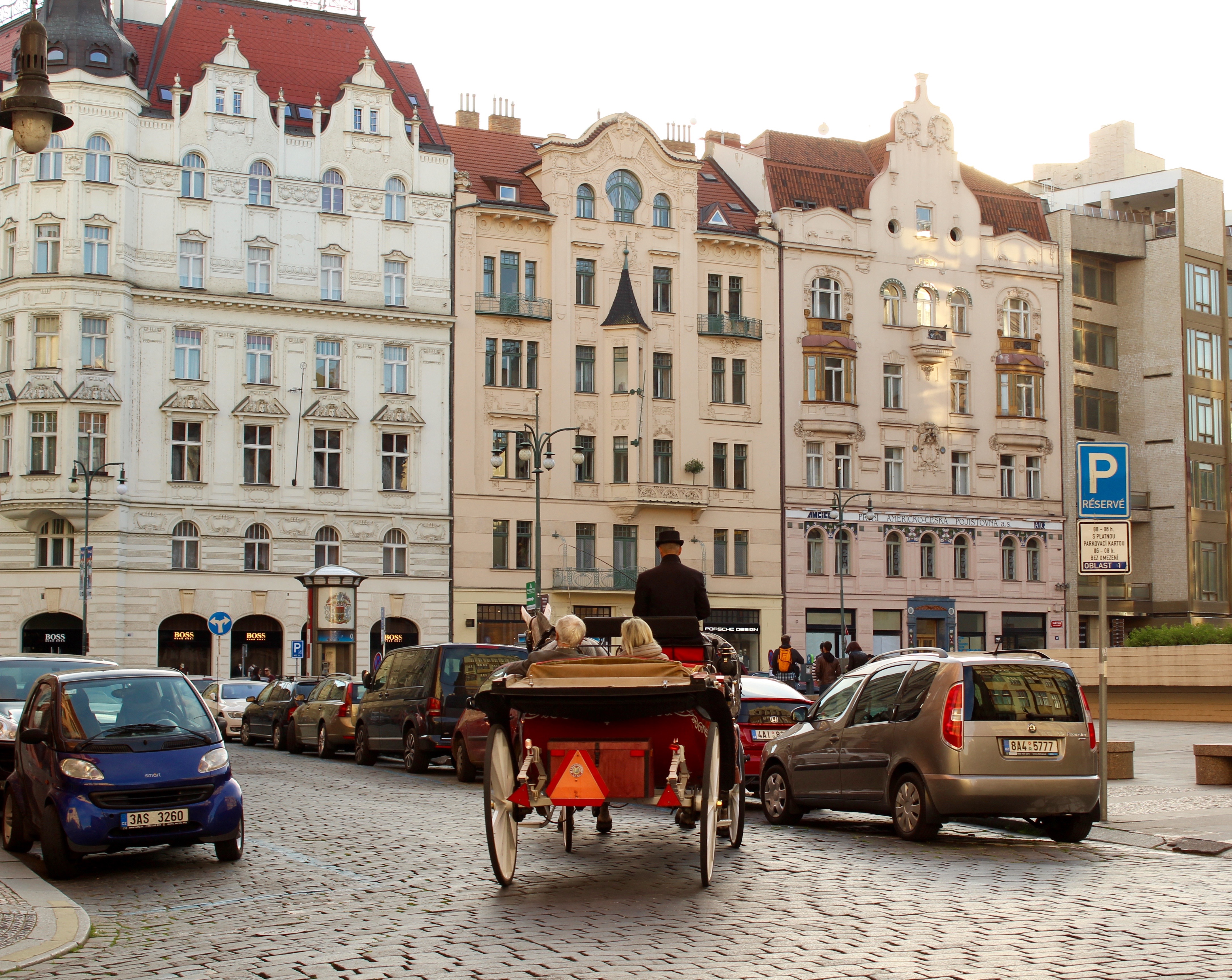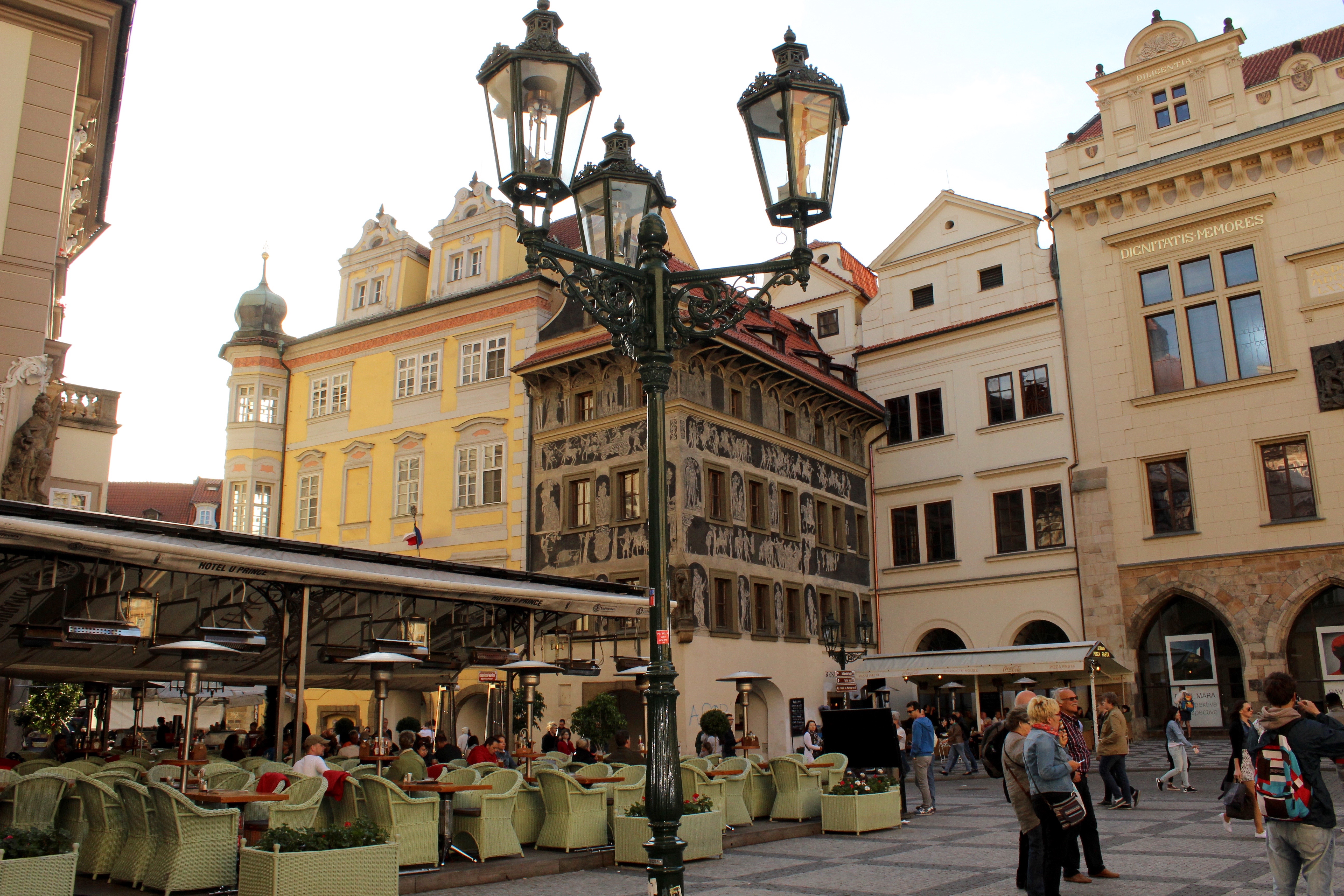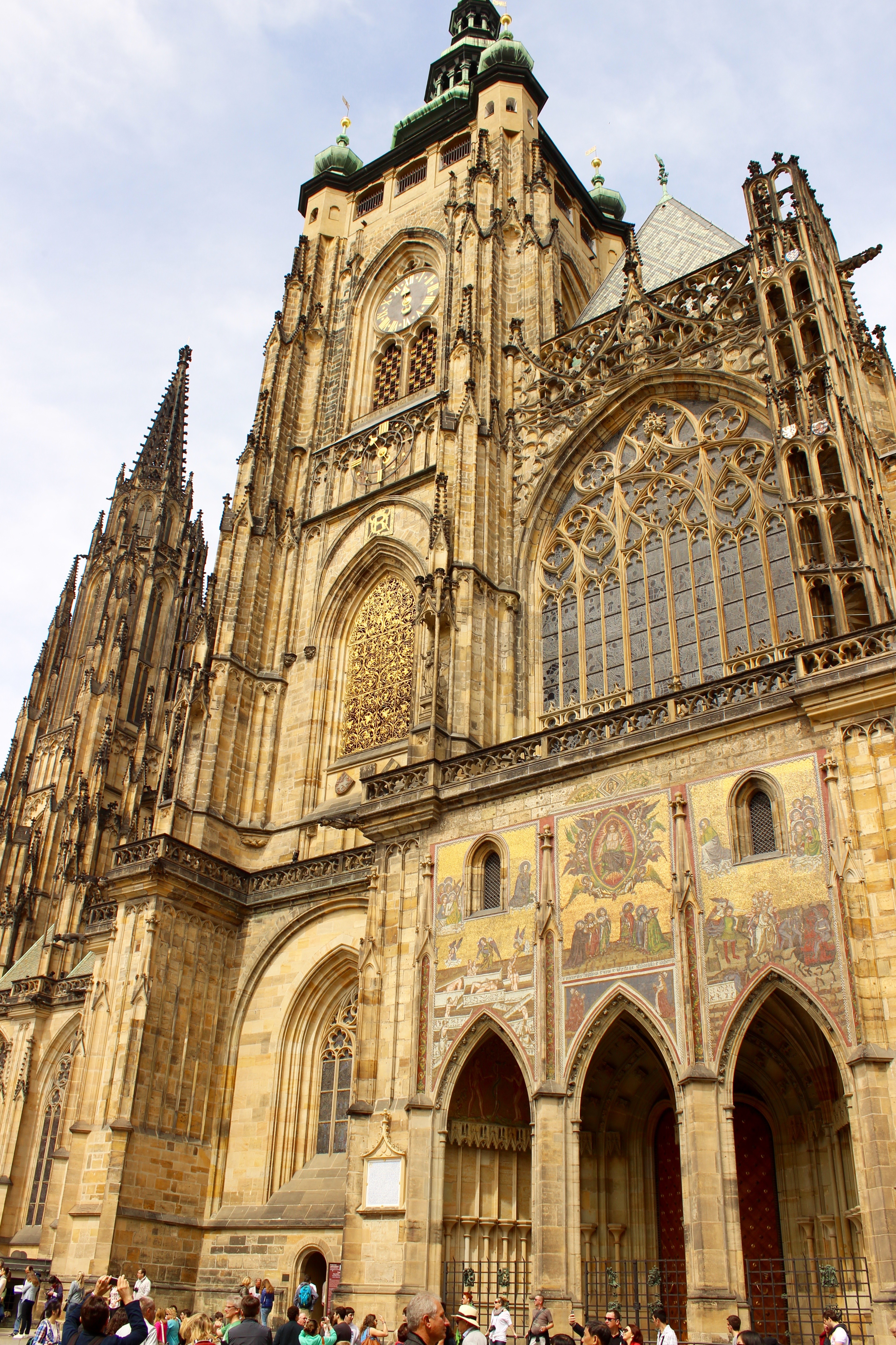 Logo após o almoço seguimos para Praga. Nesse momento a July ficou sabendo do destino final. Ali a longa distância ficou curta dado que ela queria ir para lá já havia muito tempo. Quando saímos da Alemanha logo vimos que a paisagem mudou. Na República Checa haviam morros cobertos de flores e caminhos mais tortuosos. Em Praga, que não era feriado, começamos nosso passeio já na praça principal Weceslau Square, em frente ao museu Nacional de Praga. Essa praça é a que já presenciou tudo quando é fato importante do País. Foi alí que os checos presenciaram os Nazistas tomando o poder durante a Segunda Guerra; foi ali que o País viu os soviéticos tomarem o poder e colocar um governo fantoche. E também foi ali que houveram os protestos pedindo o fim do período comunista. Caminhamos dalí até a cidade antiga. E a cidade antiga é o lugar mais agradável da cidade. A praça em frente a Catedral de San Vito, rodeada de belos cafés e restaurantes. Como o sol estava se pondo muito tarde da noite, pudemos curtir bastante a cidade.