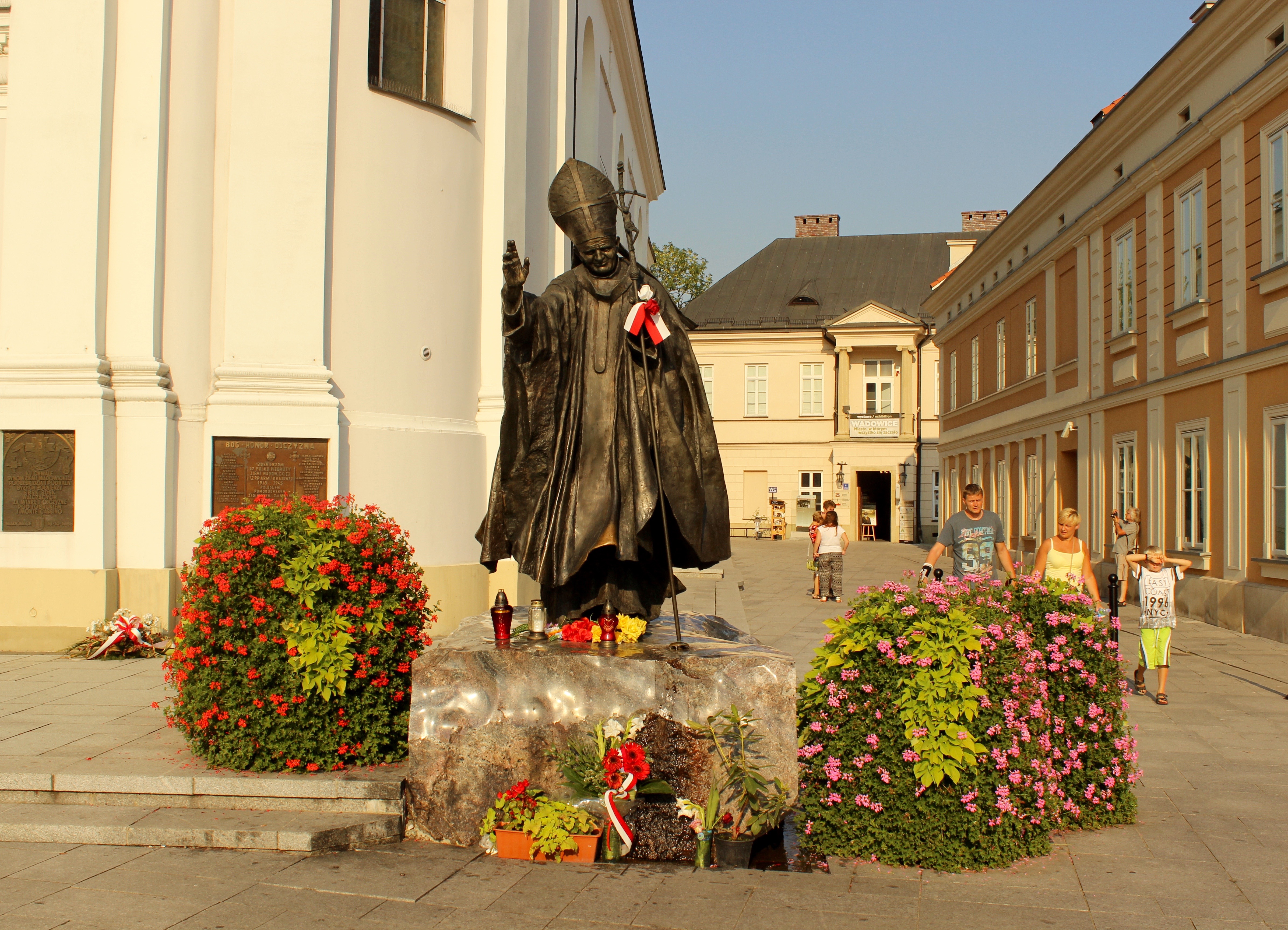 O tour pelas instalações acabou tarde. No caminho de volta a Cracóvia, nossa motorista nos presenteou com uma passada pela cidade Wadovice, onde o Papa João Paulo havia nascido. A cidade é pequena mas bastante aconchegante. Na praça central, havia um chafariz onde as crianças se refrescavam. Nossa pequena não quis ficar de fora. Apesar de ser 6 horas da tarde o sol ainda estava muito forte. Ao lado da igreja havia uma estátua do Papa, e ao lado direito dela, a casa onde ele nasceu. É uma casa grande, mas na verdade ele era muito pobre e vivia em apenas um ou dois cômodos. O local é de visitação obrigatória de peregrinos. Apesar disso, havia pouca gente no local o que tornava a visita especial. E vendo esta trajetória e a forca da devoção dos poloneses, essa visita começava a tirar um pouco do peso da visita ao campo de concentração.