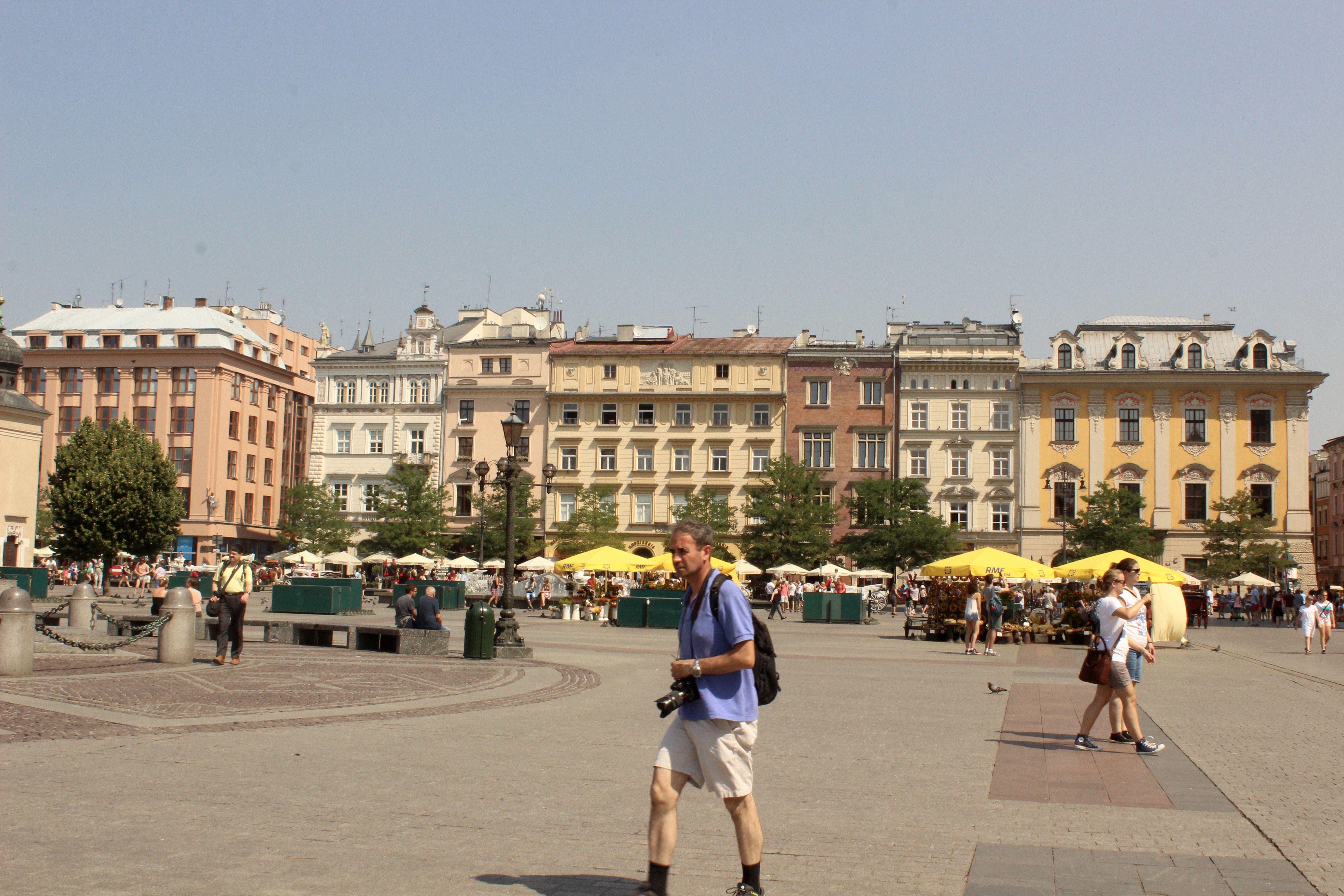 Na sexta-feira, fizemos todo o tour pela cidade a pé . Como não havíamos levado carrinho, tivemos que carregar nossa pequena no colo. O calor estava intenso. Tínhamos que buscar sombra de todas as maneiras. Depois de meia hora de caminhada, estávamos no centro antigo da Cracóvia. Essa área é cercada por uma muralha. Dentro desta muralha há um castelo. Para qualquer lado que a gente anda nessa região, encontram-se agradáveis cafés e lojas de suvenir com produtos bastante diferenciados e artesanato belíssimo. Músicos por toda a parte. Visitamos a igreja central, o Town hall e o escritório onde o Papa chegou a trabalhar ainda quando era bispo. Saímos da cidade antiga, descendo o morro por trás do castelo e seguimos para o bairro judeu. No meio do caminho paramos para almoçar num restaurante polonês. A comida é muito boa e relativamente barata comparada com os países do oeste da Europa. A Polônia, apesar de estar na união européia, ainda não adotou o Euro. Ainda é incerto quando e se adotará. O fato é que isso é um bom diferencial no processo de atrair turista, pagando mais barato. Desde que o Pais saiu do comunismo, ele vem crescendo a percentuais elevados. Apesar de estar na Europa, é considerado um pais emergente, tais como outros países do leste europeu. O consumo parece bastante efervescente, com lojas muito modernas e imensos supermercados. O povo parece bastante simpático, mas no comércio ou no serviço os funcionários não parecem transmitir tal felicidade, apesar de atenderem bem. Eles tem o rosto sério e muitas vezes, compenetrados. Talvez as coisas não estejam lá muito boas.