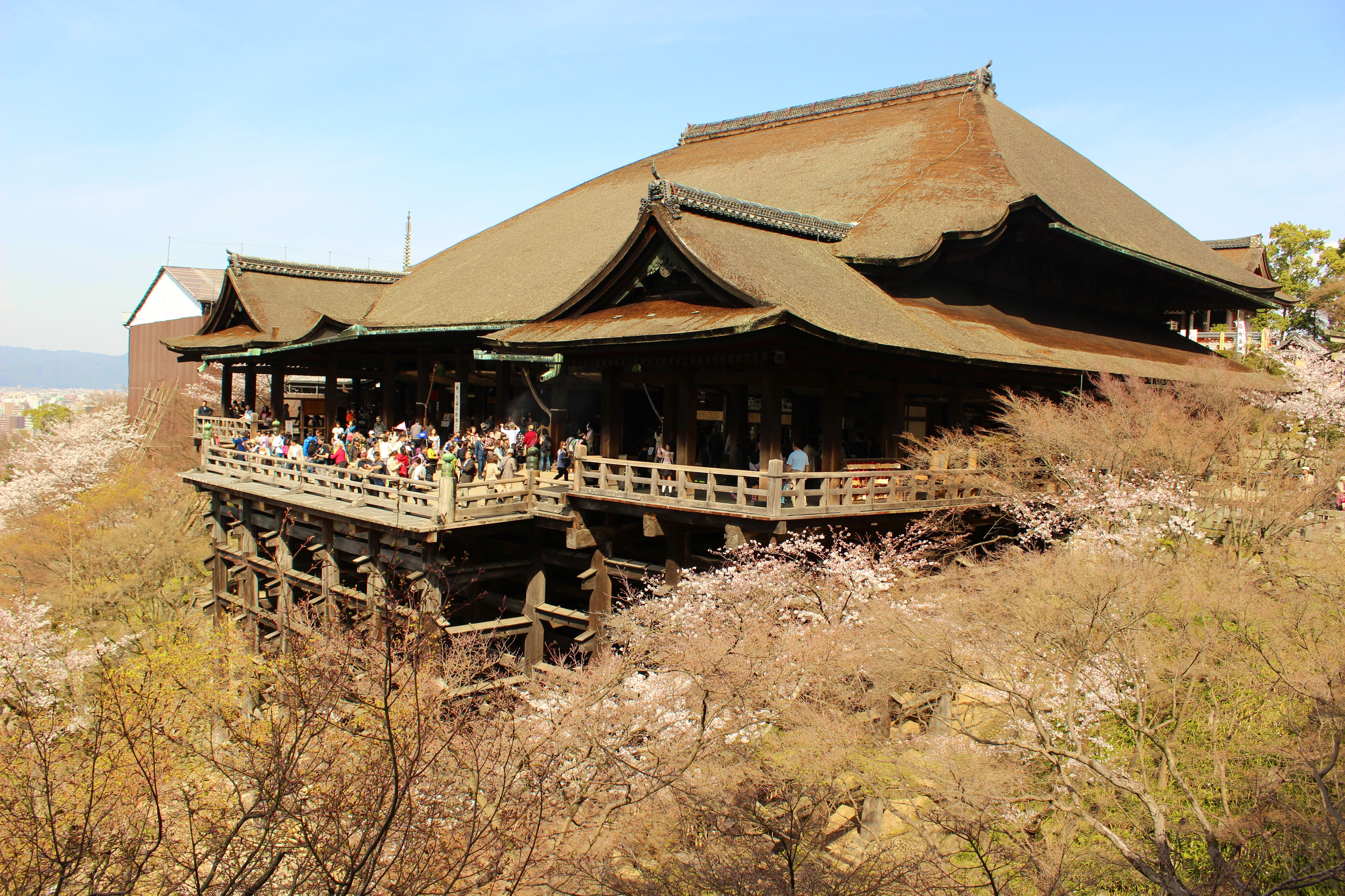 Harumi explicou que a primeira parada do dia seria o templo budista Kiyomizu-dera, construido em 700 e tanto, no pé de uma montanha. “Se deixarmos para mais tarde, será impossível chegarmos lá de carro”. E realmente fazia sentido. Pudemos curtir o comercio local entre o estacionamento e o templo. Ela foi parando com a gente pelo caminho até o templo foi apresenta as iguarias locais, muitas delas apenas encontradas em Kyoto. Certamente, se estivéssemos ali sem ela, passaríamos direto sem tal aproveitamento. Era possível caminhar mas ja estava bastante movimentado. O templo é também bastante popular entre os jovens que buscam encontrar sua cara metade e daqueles que querem agradecer por terem encontrado uma.